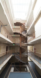 玄関を入ってまず目に飛び込んでくるのは堂々たる立ち姿の螺旋階段。