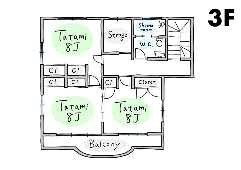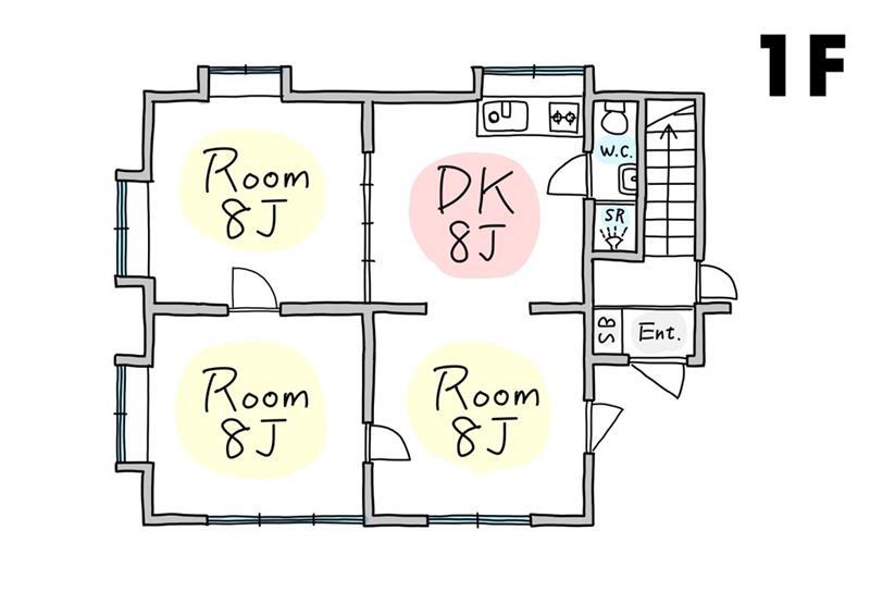 ・間取り:1F 3DK ( 洋8J ×3 / DK8J)