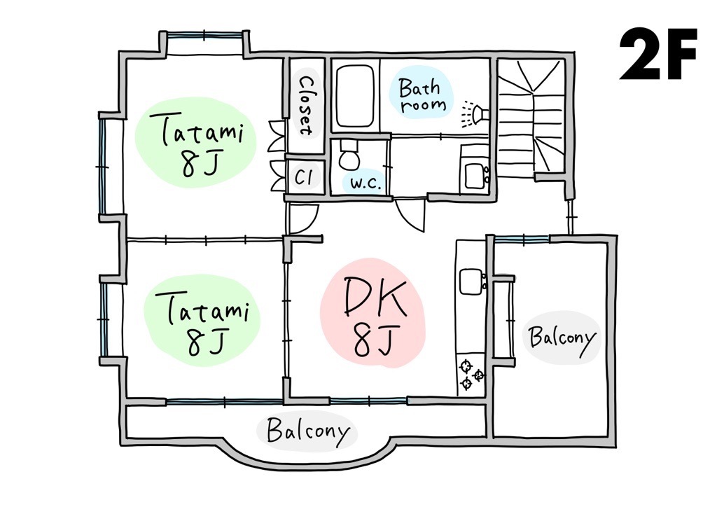 - 間取り:2LDK ( 洋8.5J / 洋8.9J / LDK13J )