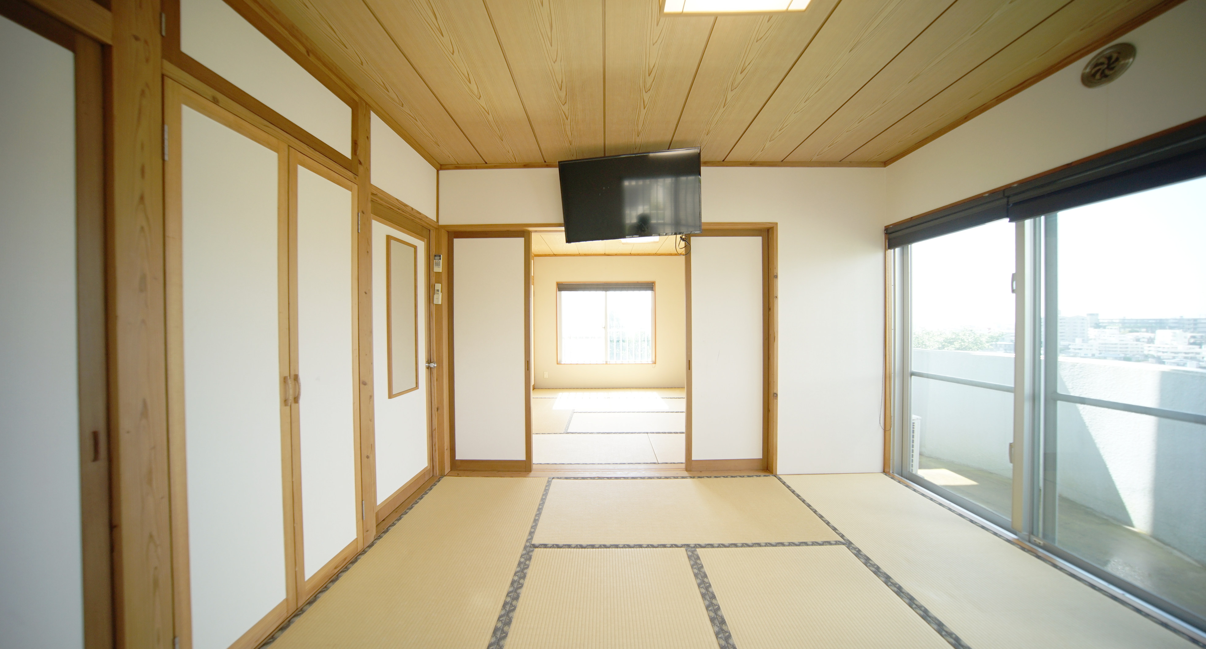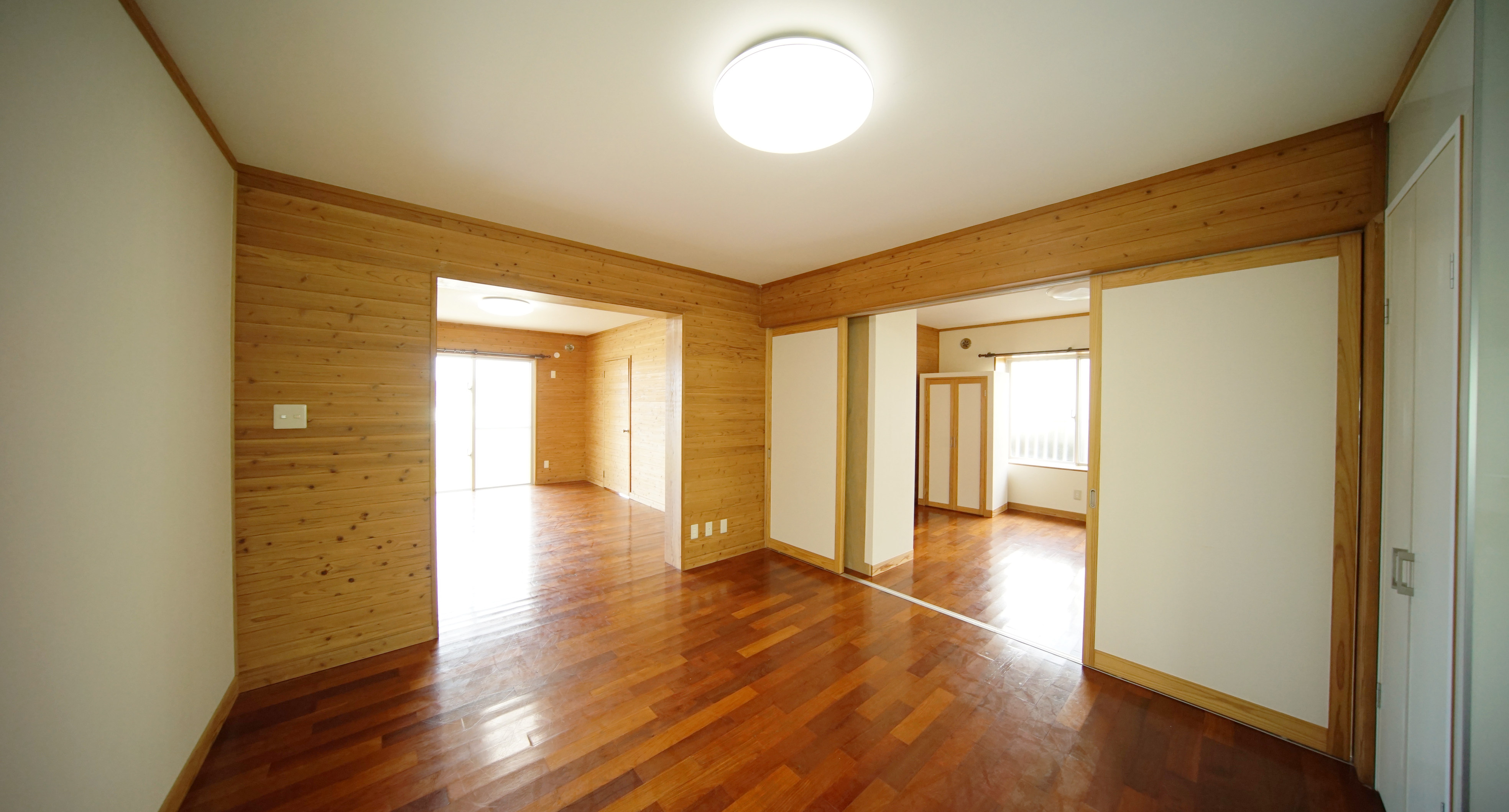 ドアでしっかりと区切られた1部屋と、残りは引き戸などで緩やかに区切られた空間となっております。
