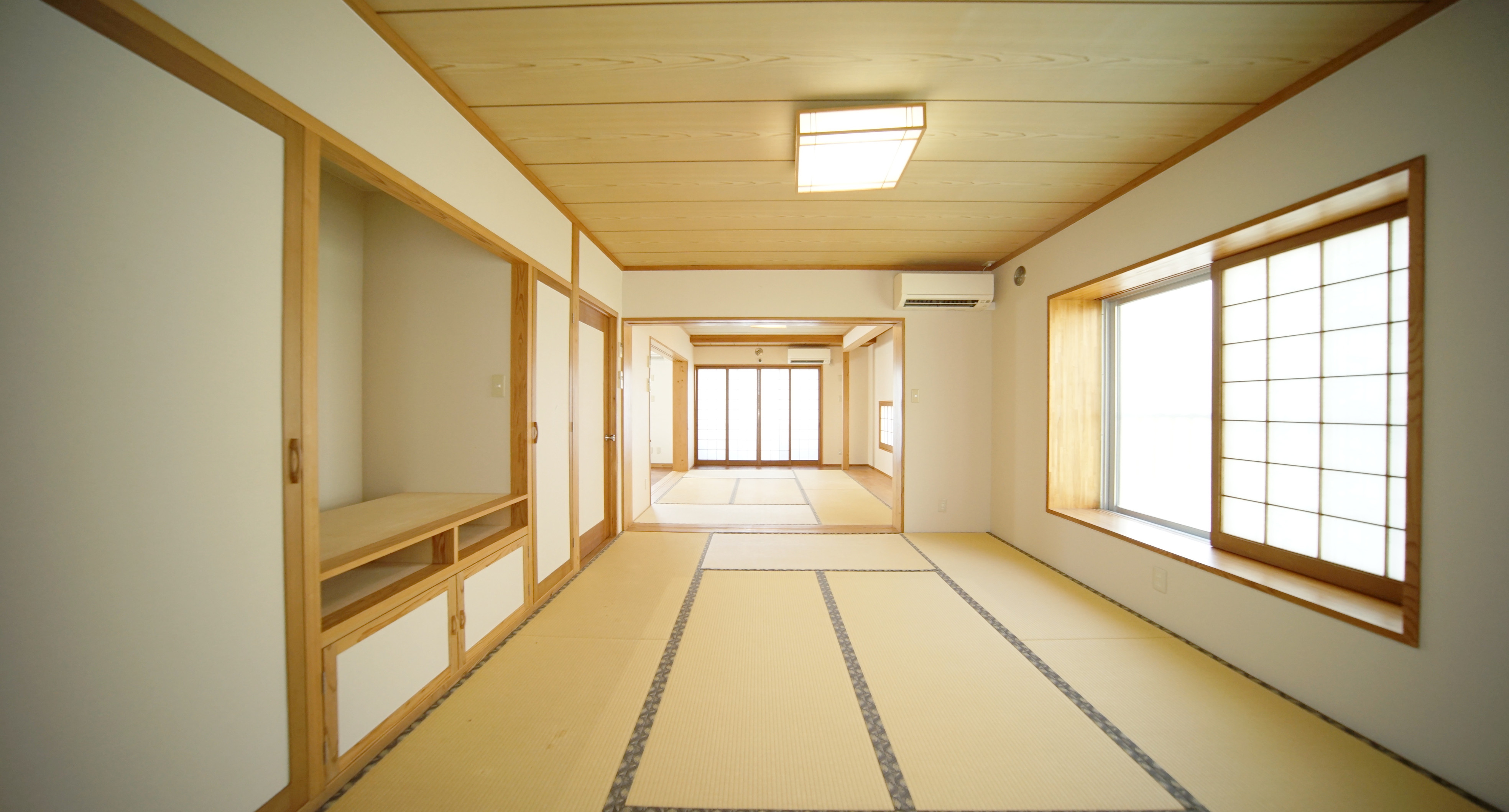 さらに奥に進むと、和室が二部屋。奥行きもあり、大きな出窓からはしっかりと陽の光も入ります。