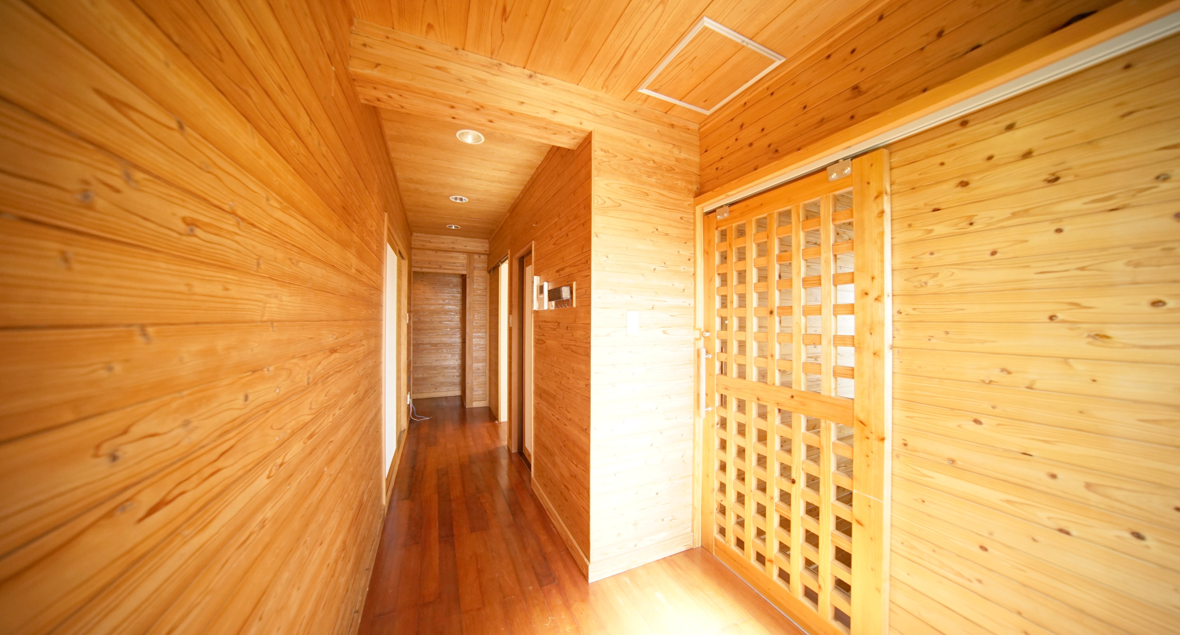 写真を眺めていて気付いた方もいらっしゃるかと思いますが、多くのお部屋で木材の壁が使用されています。