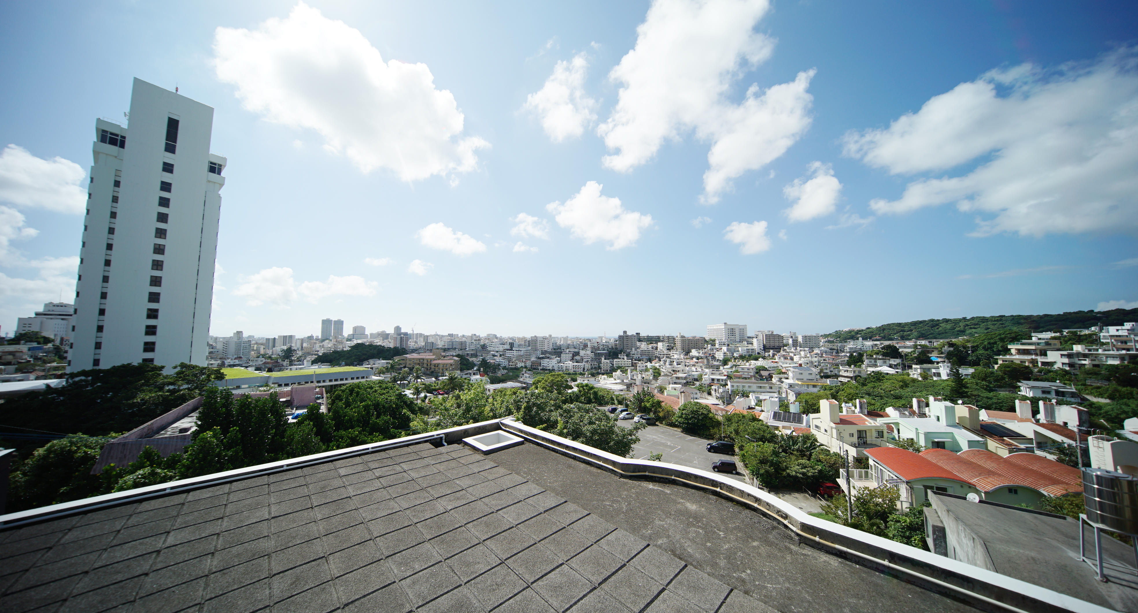 そしてそして、3階のベランダからは、那覇の町並みと奥には海も眺めることができます。