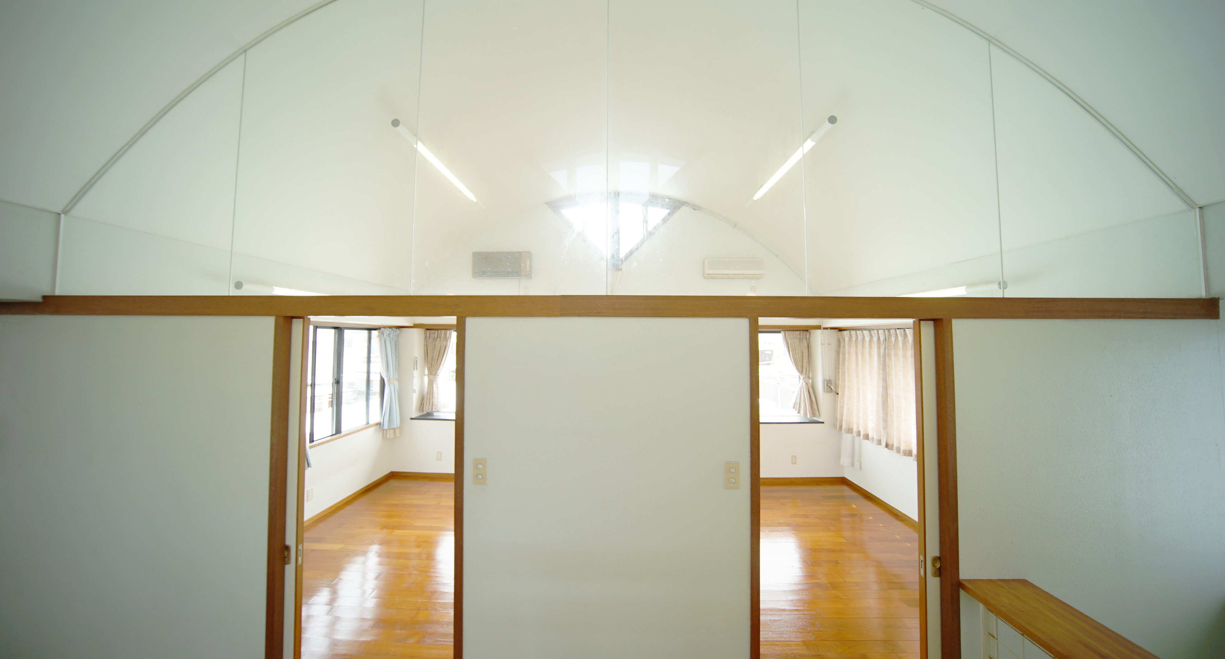 子供部屋や書斎の天井がアーチになっていたり、極めつけは、まん丸い形のトイレ。