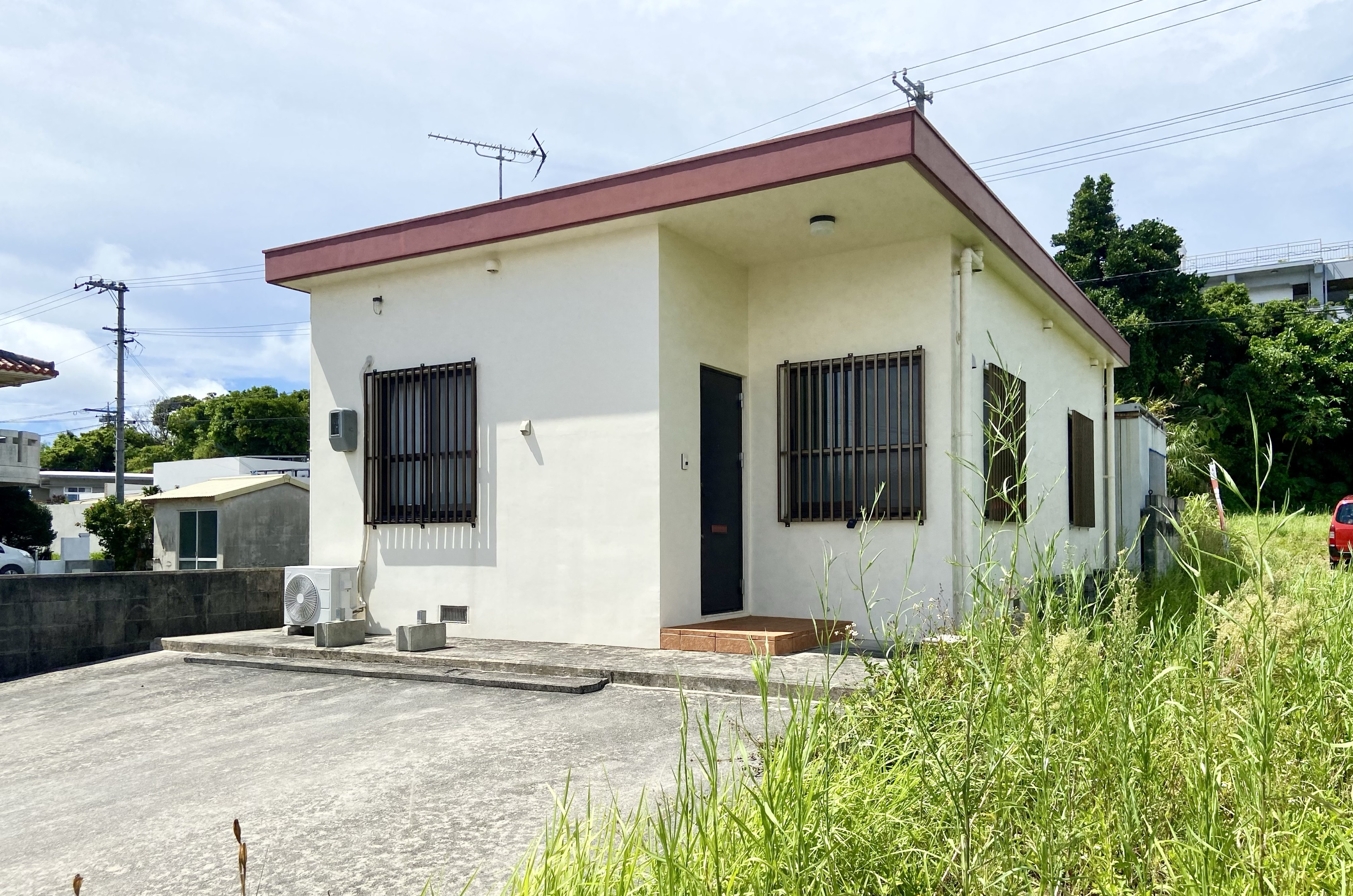この緑の中にレゴブロックをぽんとひとつ置いたかのようなかわいらしいお宅は北中城村の大城(オオグスク)にございます。