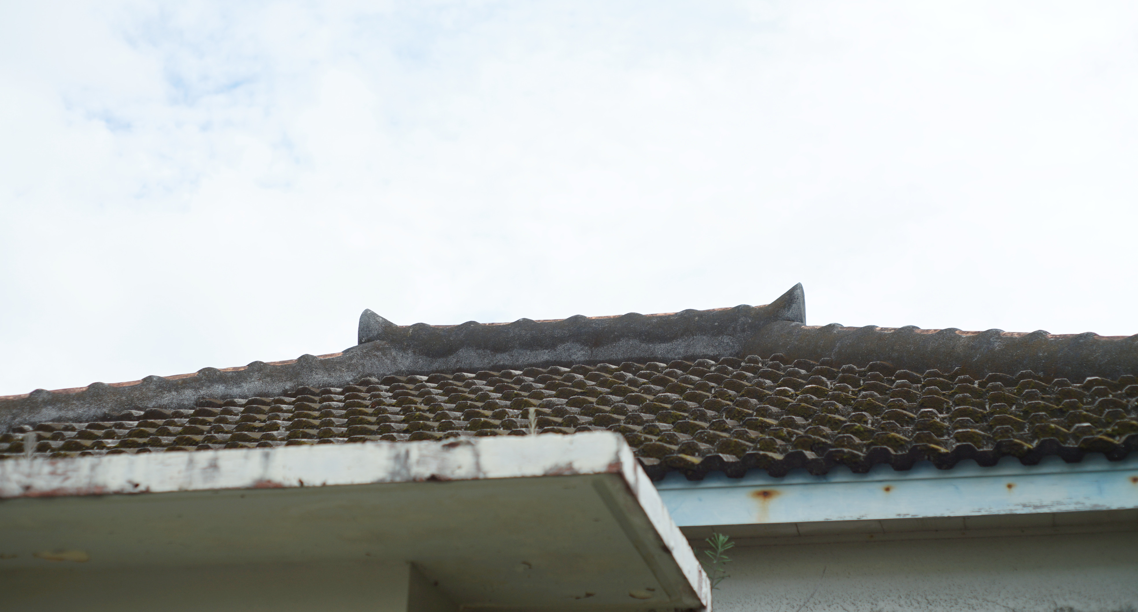 建物外観は、コンクリブロック構造の白い外壁と、年季の入った瓦屋根。