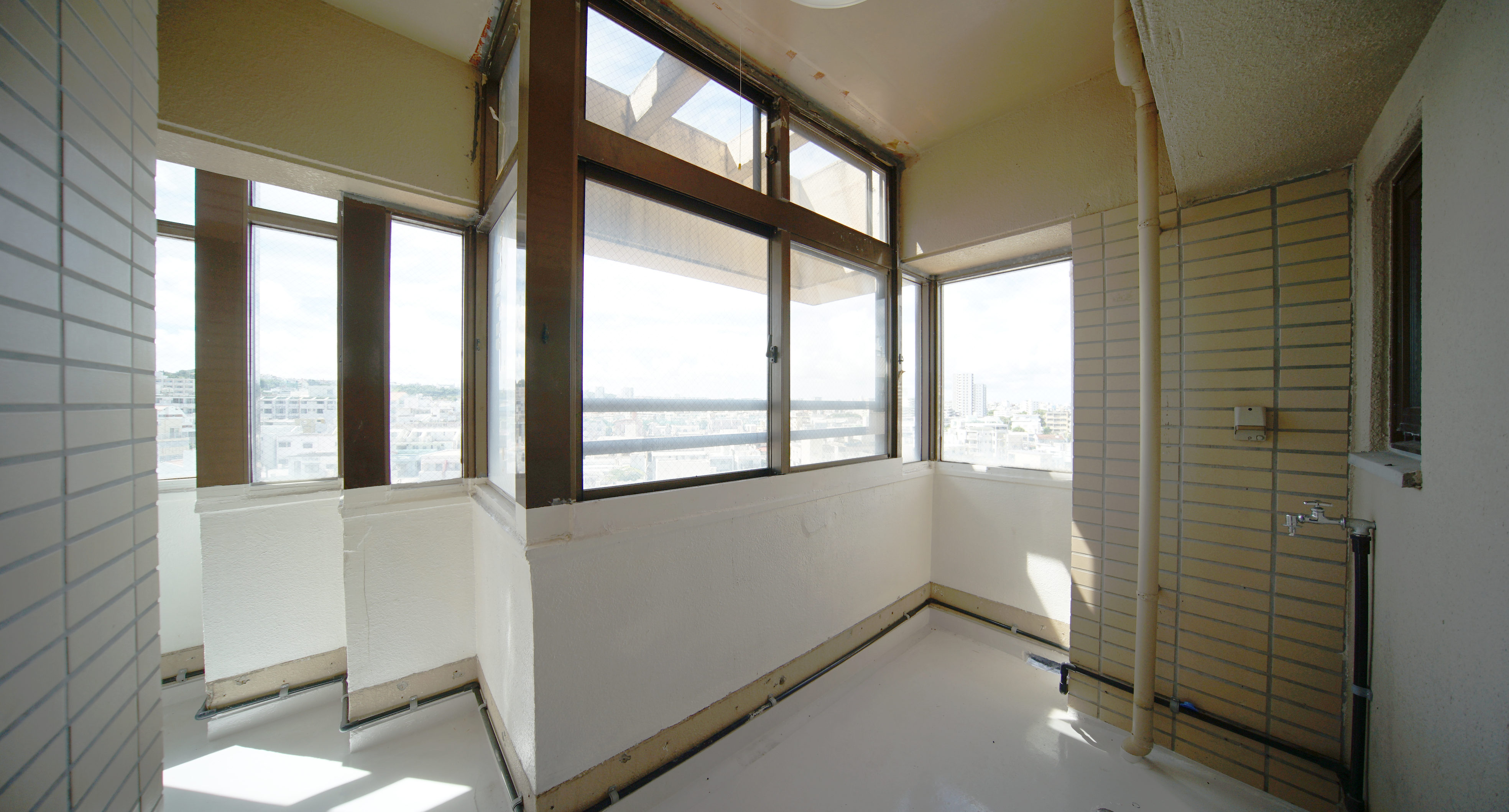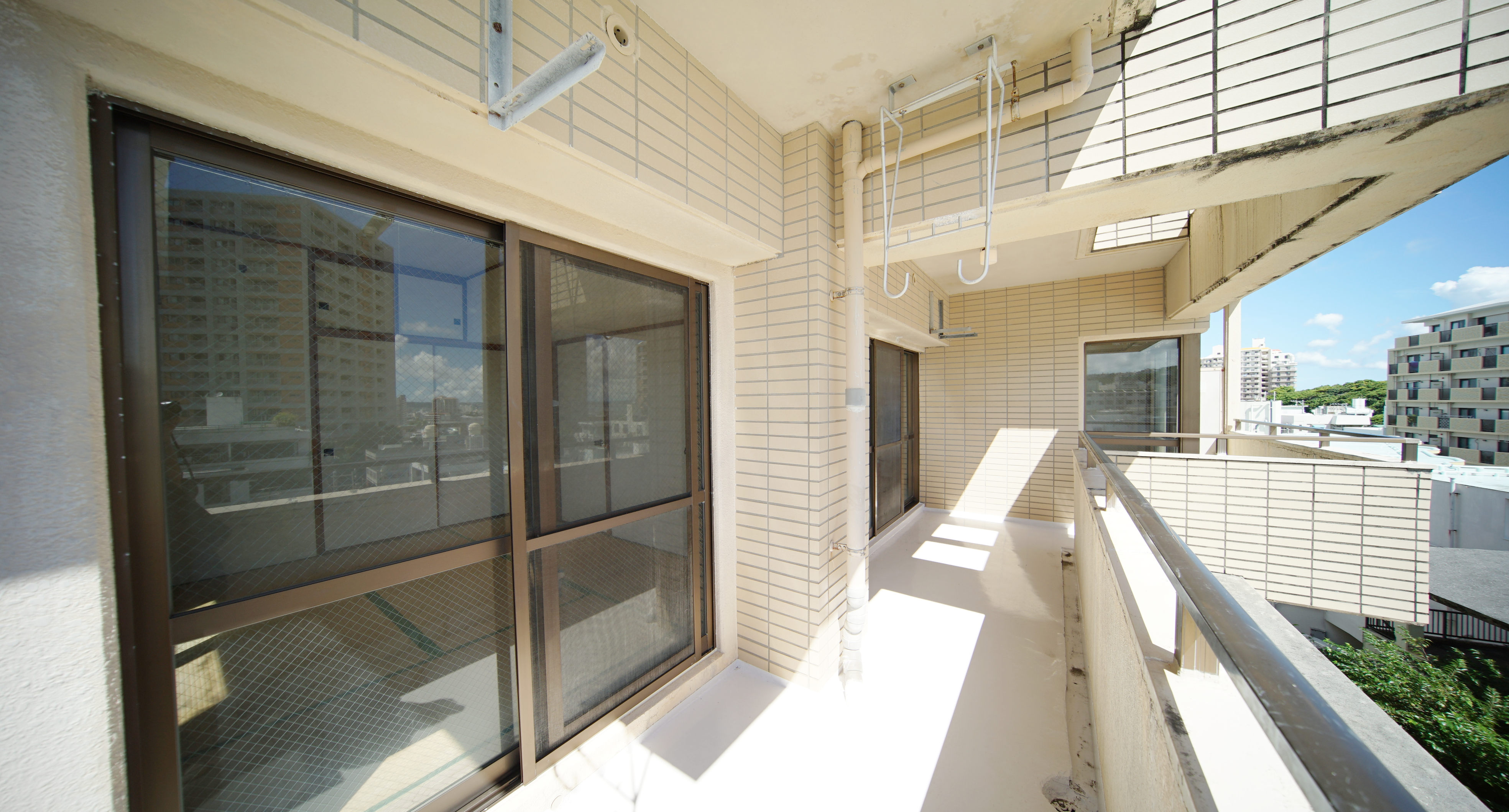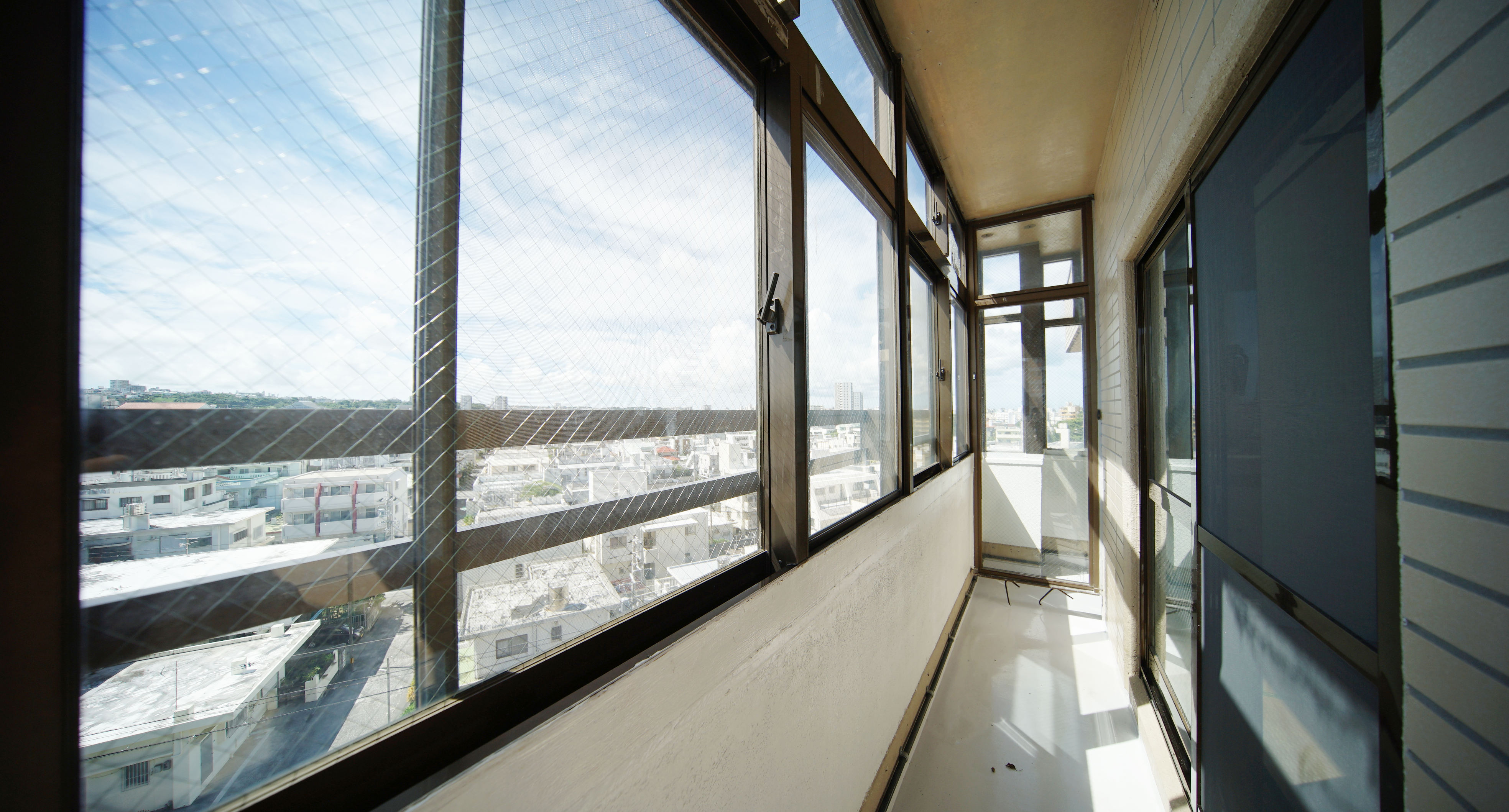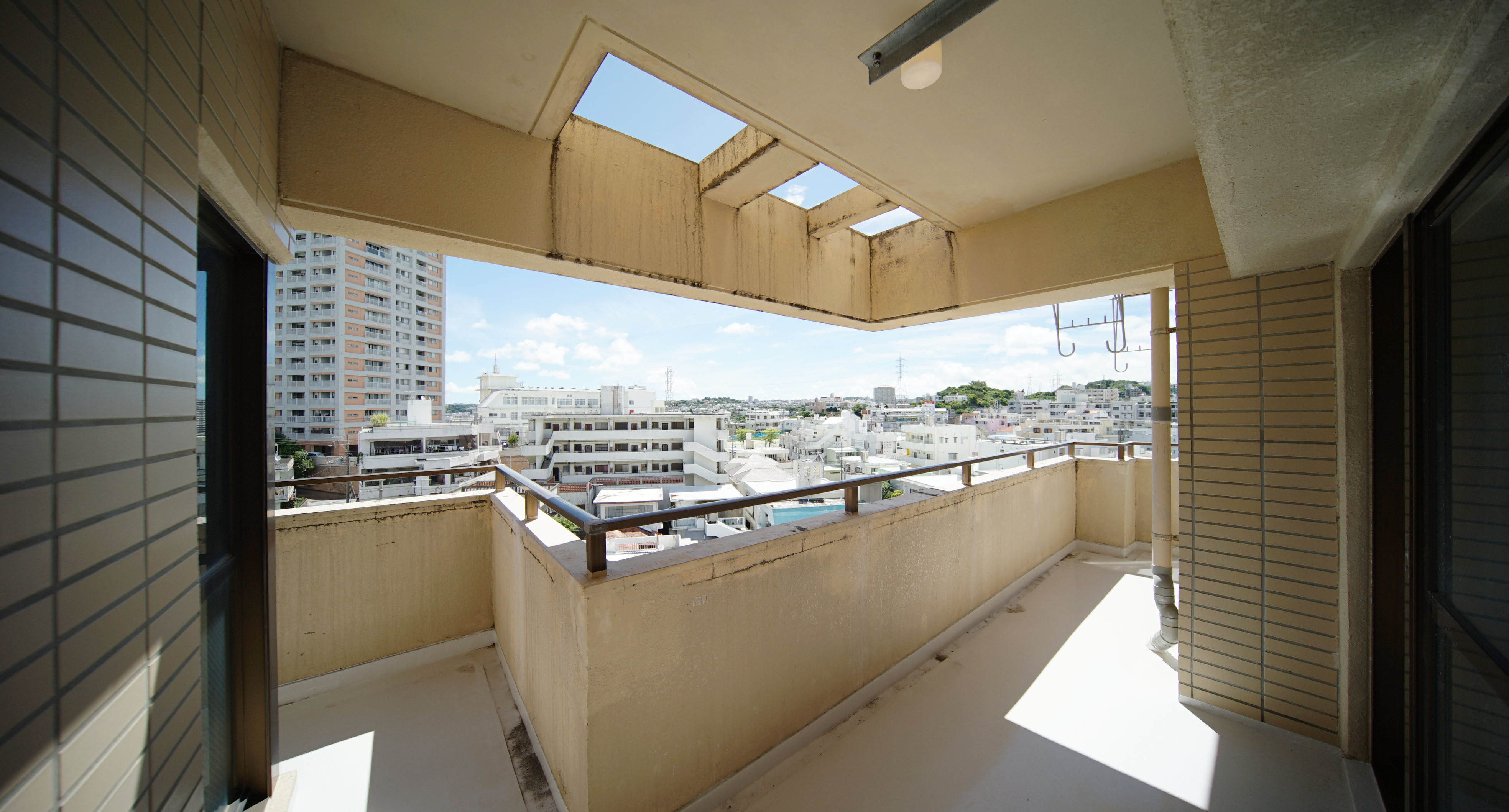 この圧巻のバルコニーから、270度くらいの範囲で浦添の景色を見渡せます。