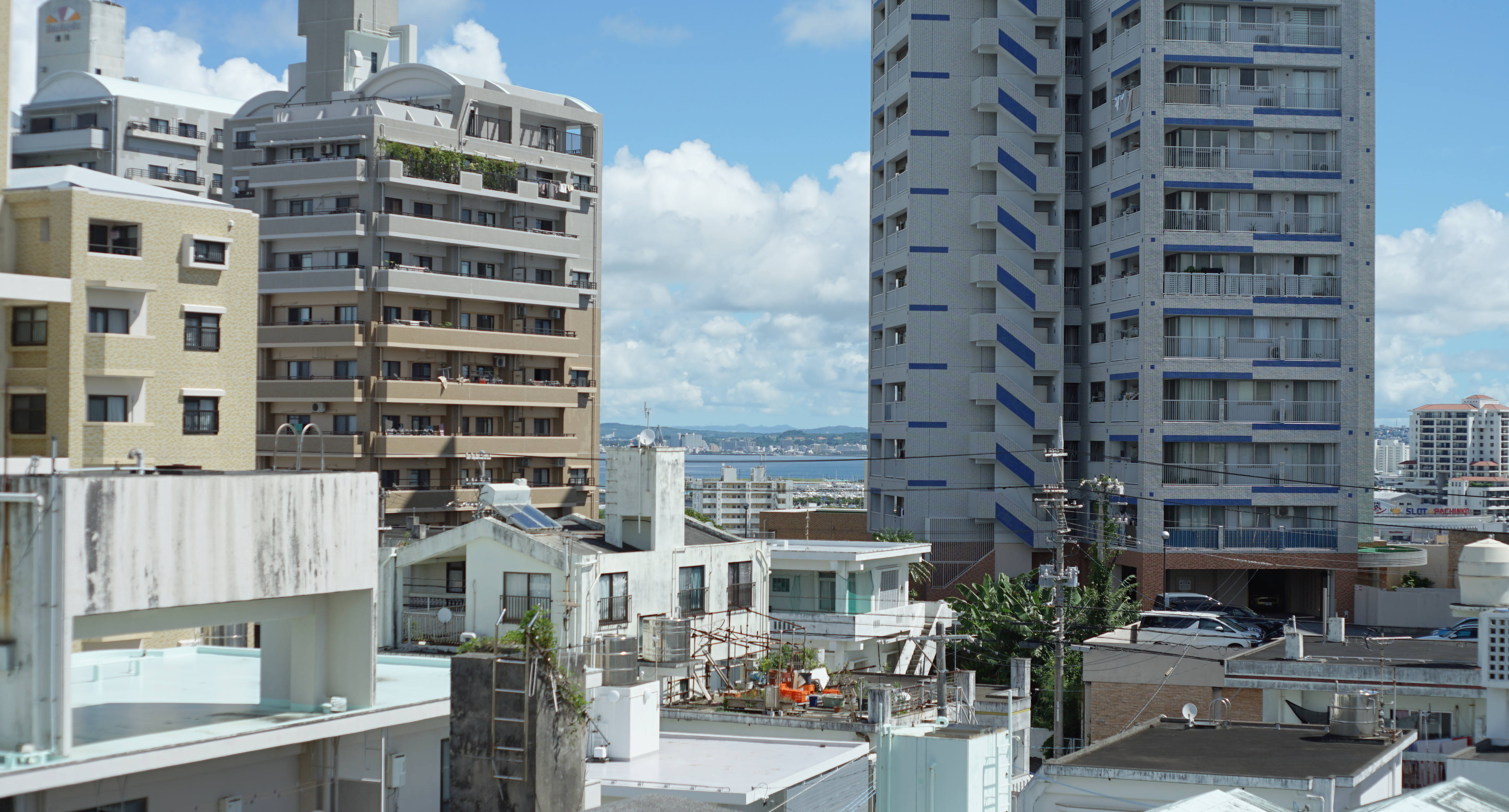 てだこホールや浦添市役所、マンションとマンションの間から海も見えました。