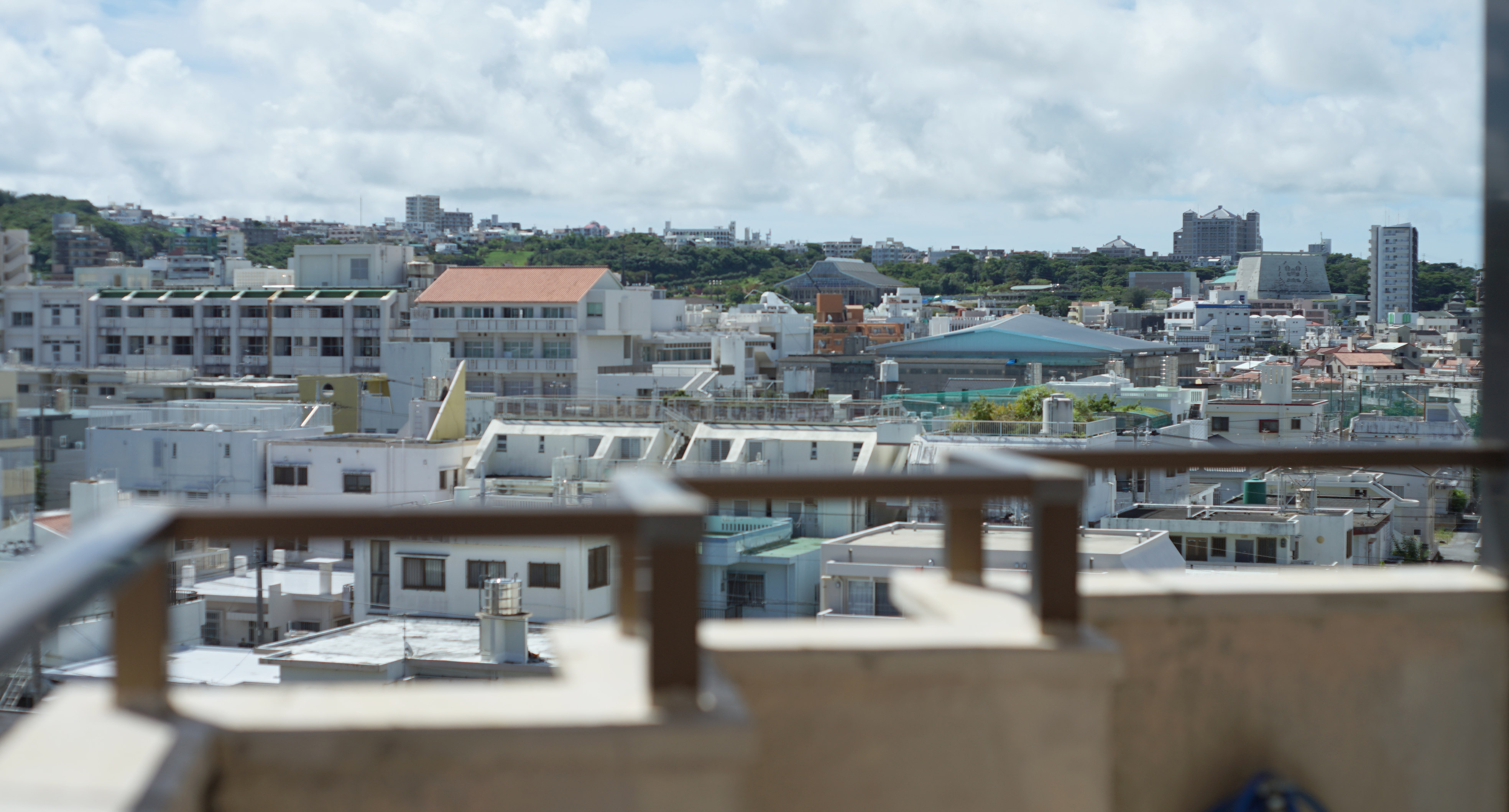 通り抜ける風。浦添の町も、空も、ちょこっと海も見渡せるナイスビュー。