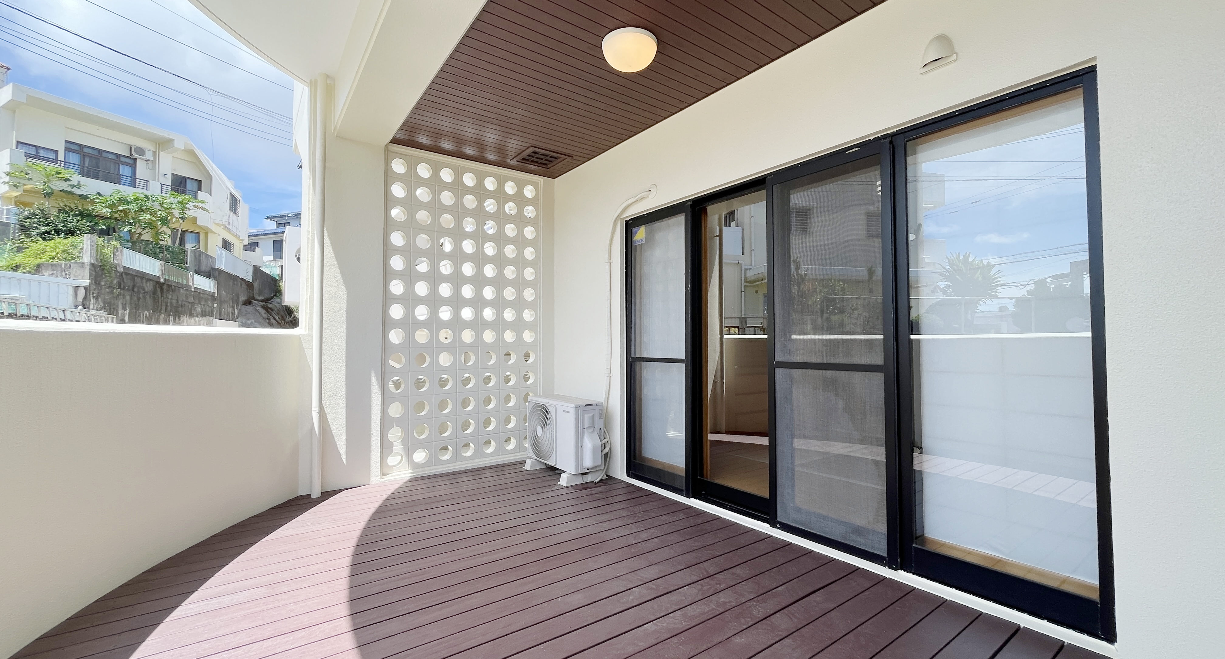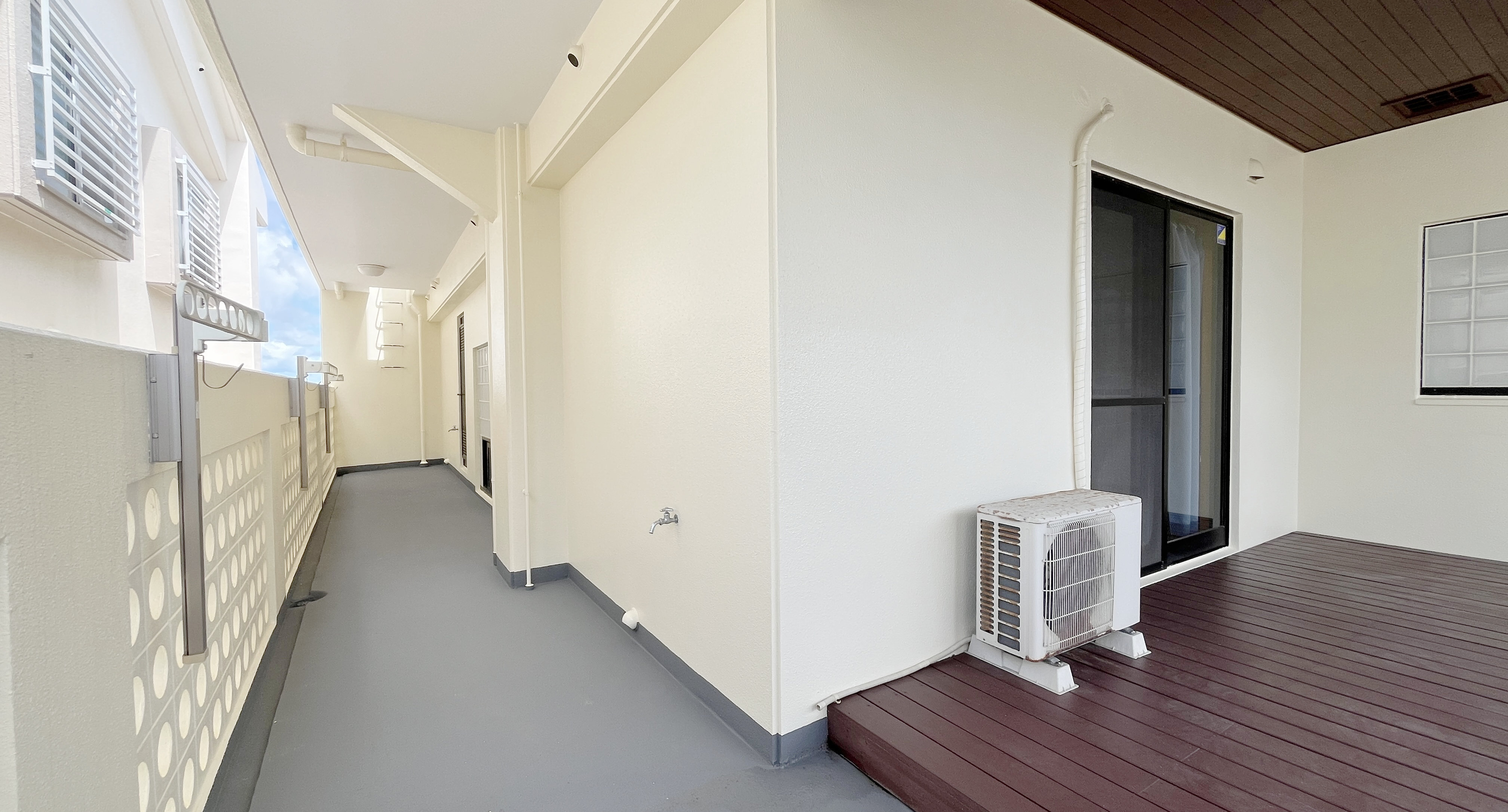 なんだかこれだけで、一般的な長方形のバルコニーよりもほっこりする空間というかなんというか。