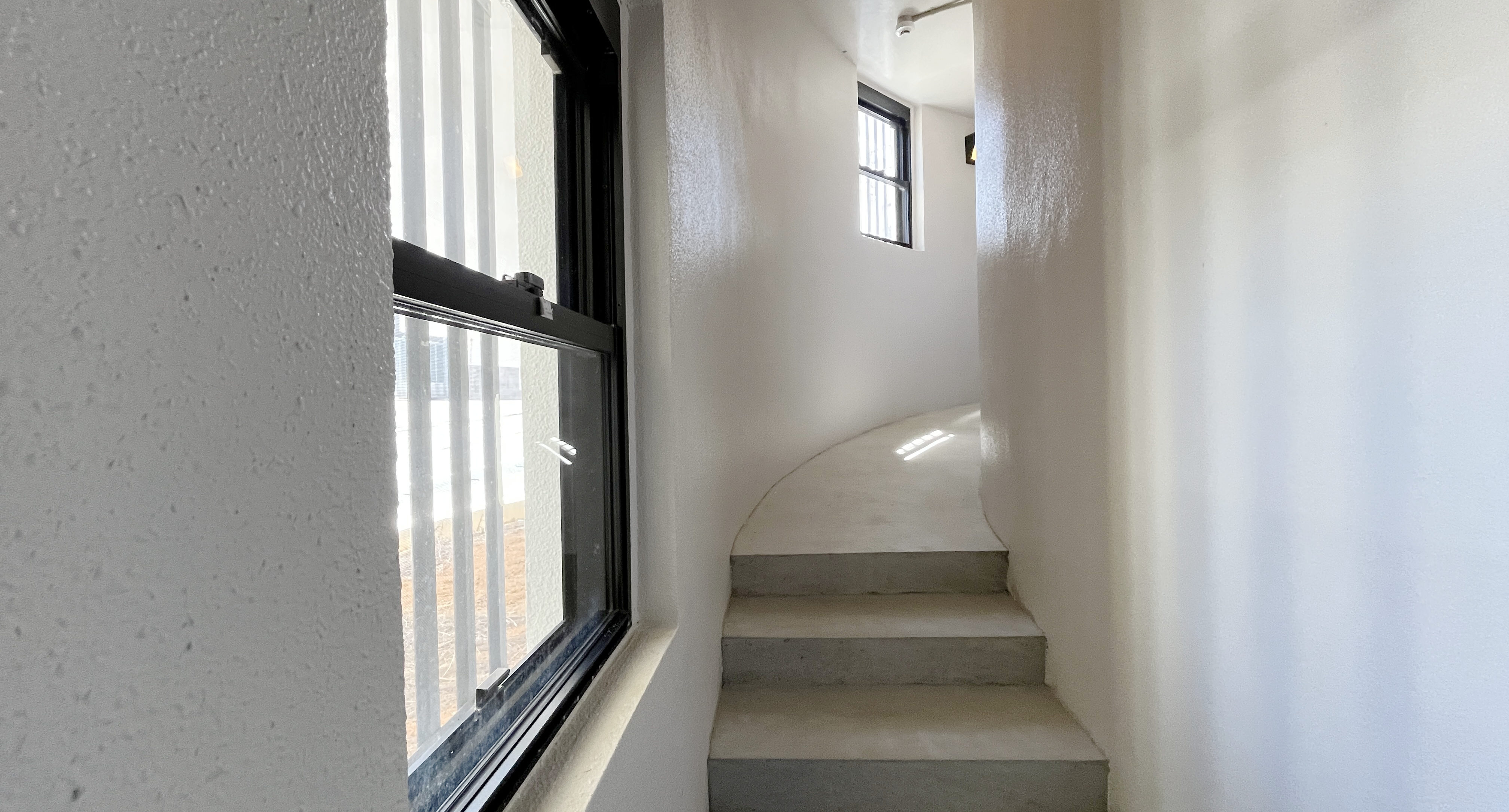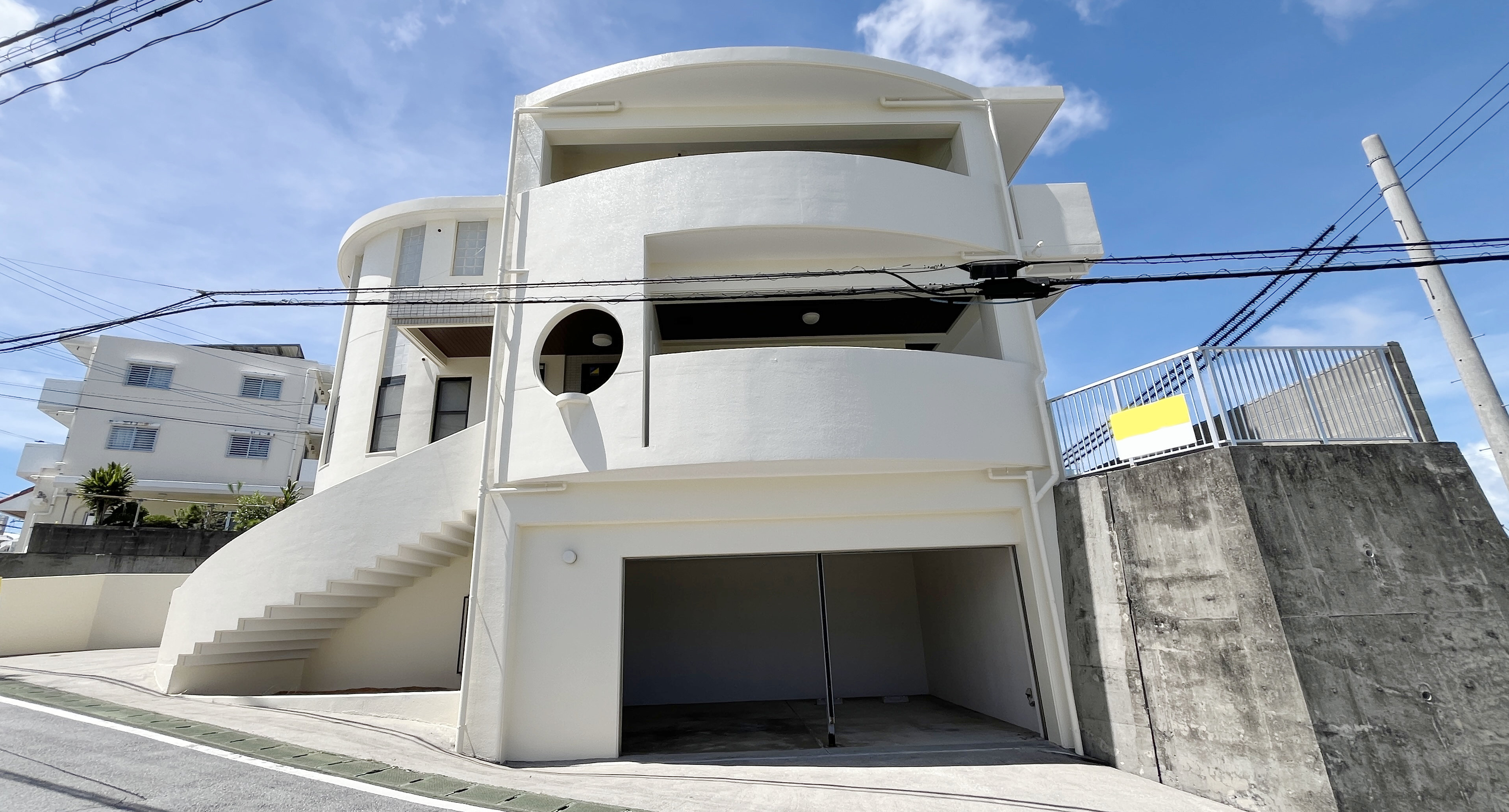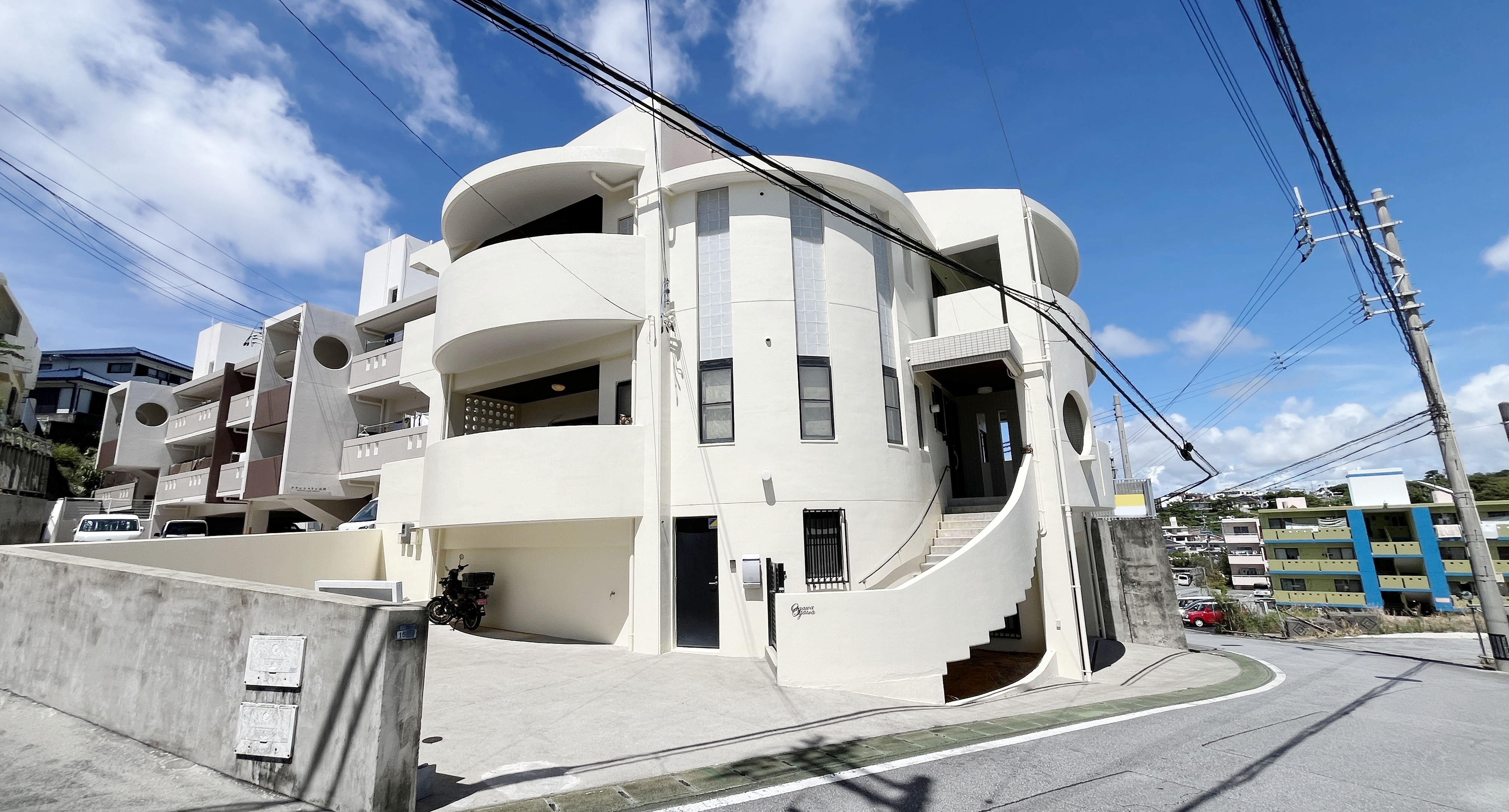 建物の外観で特徴的なのは、何といってもバルコニーや外階段の曲線。