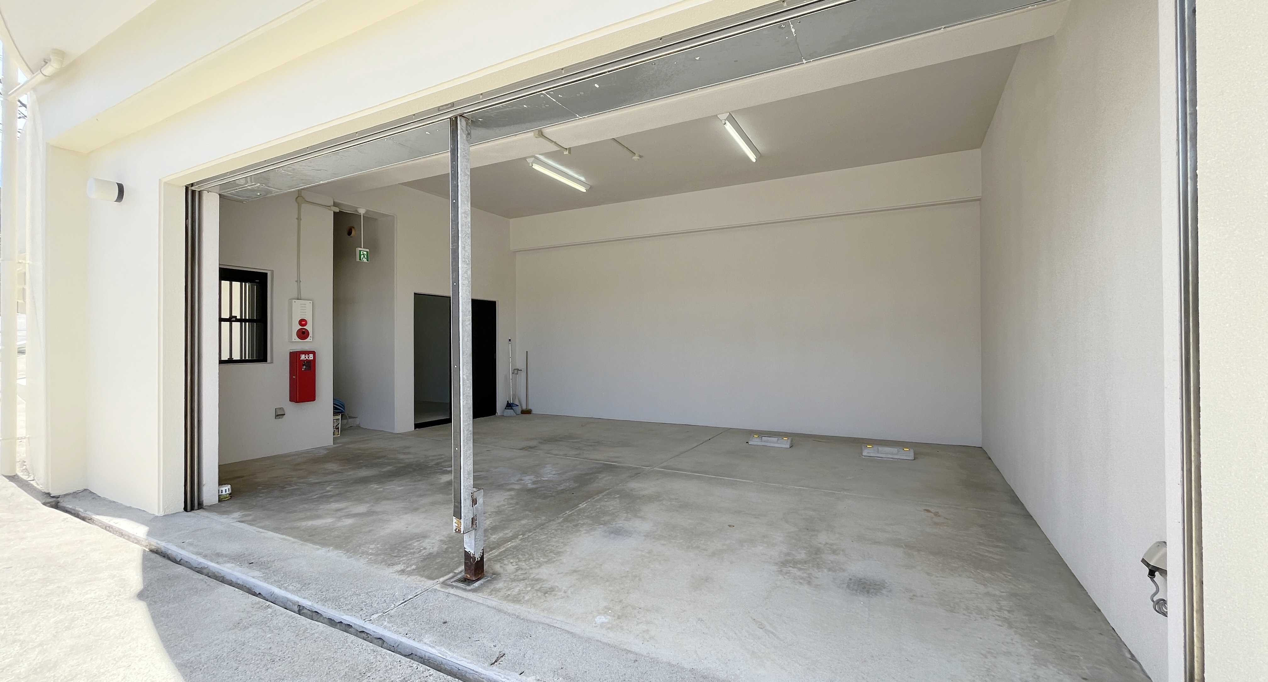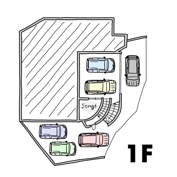 1階部分には大きなシャッター付き車庫と、これまた扇形のような倉庫までついています。