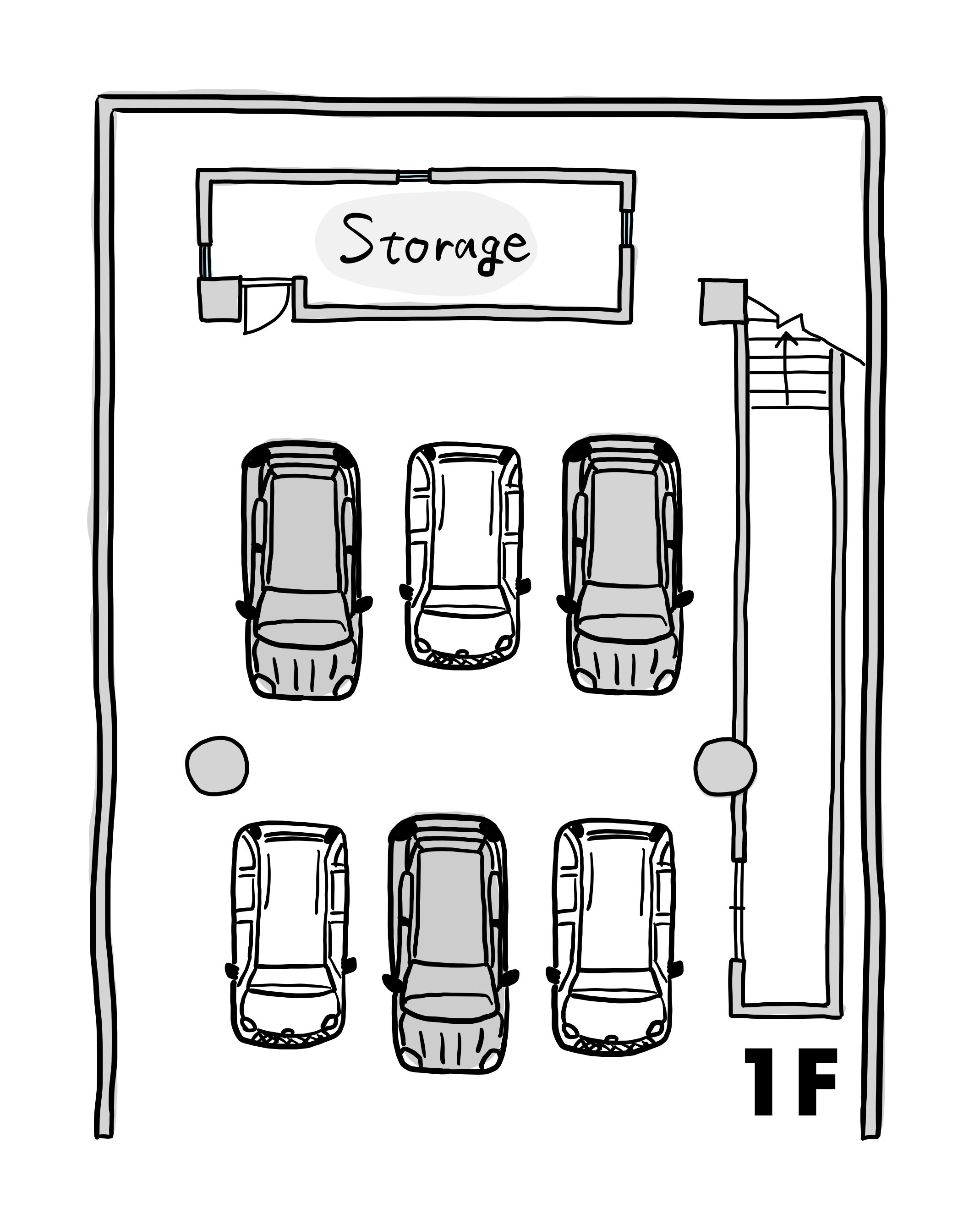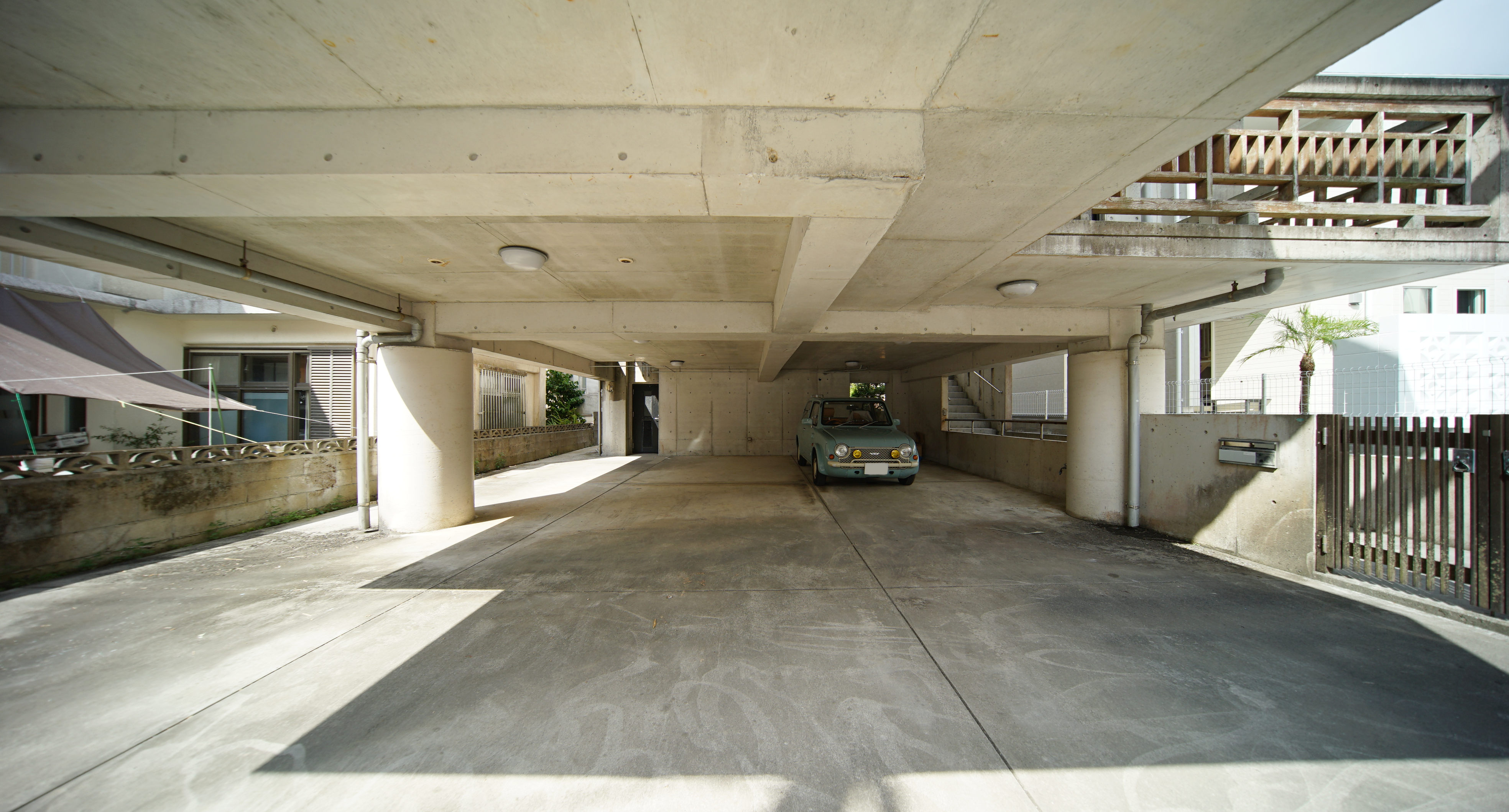 その大きなお家を支える下駄履きの駐車場には、車種によっては6台ほど停められる広々スペース。