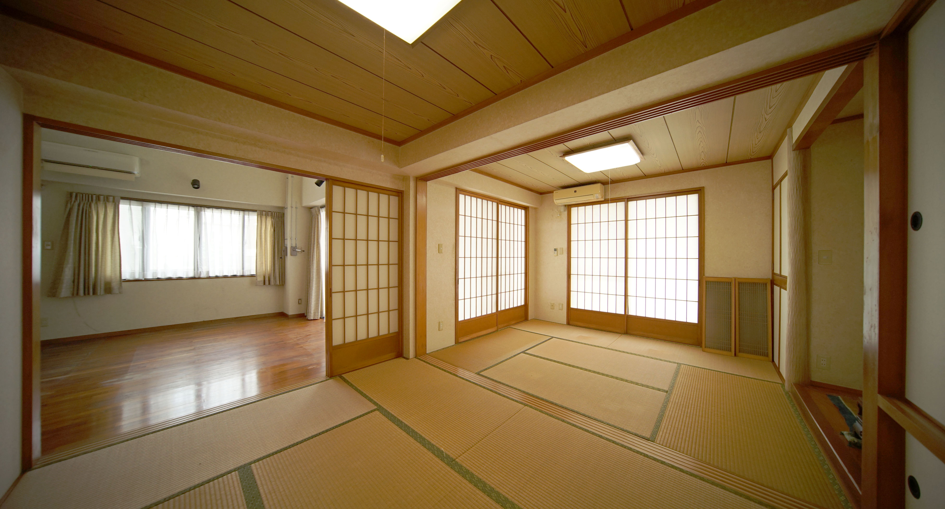 LDKの対面には和室が2部屋に、洋室が1部屋。どちらもふすまや引き戸で緩やかに仕切られます。