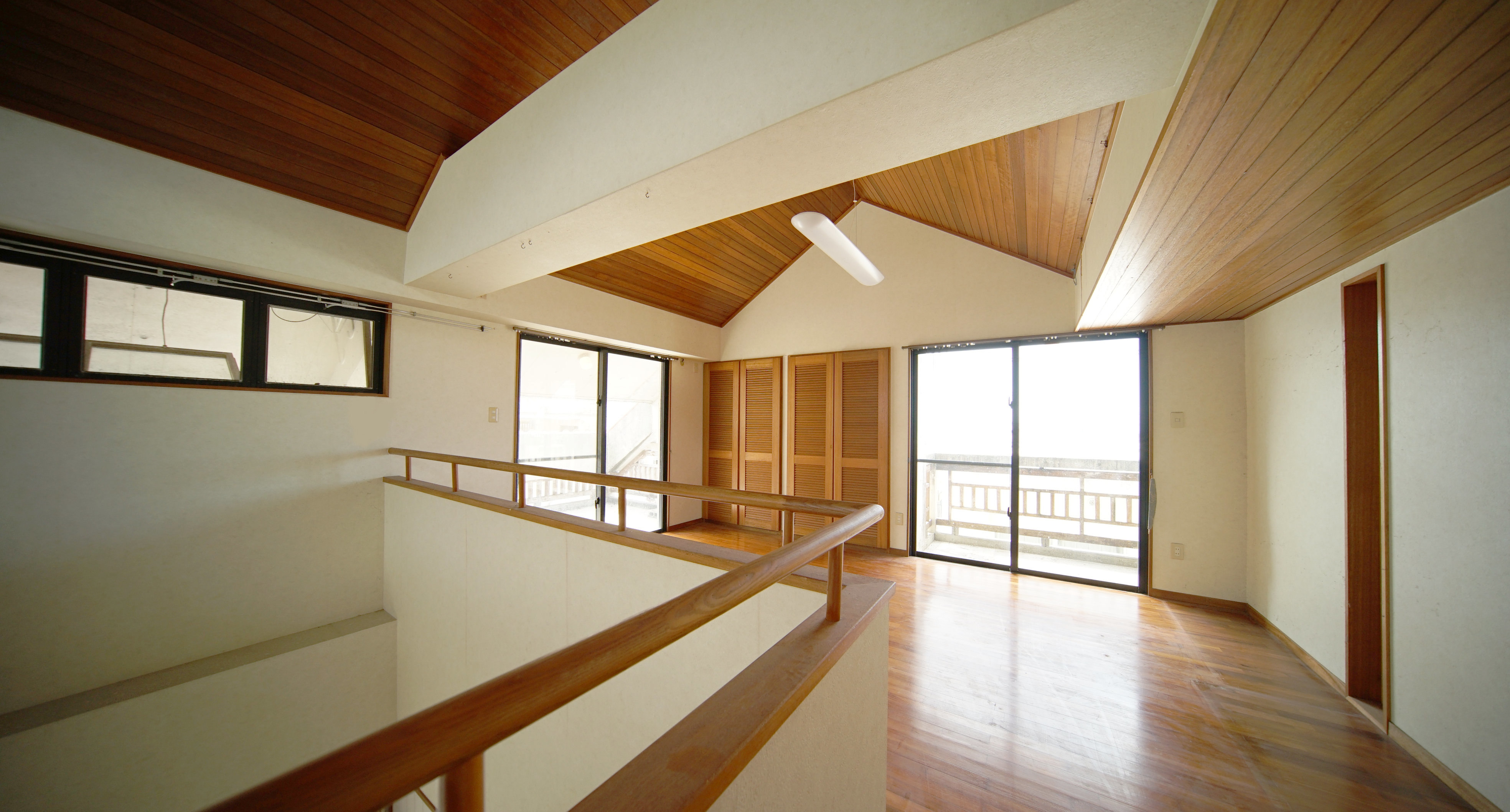 3階へ上がると、吹抜けを見下ろす寝室と、ウォークインクローゼット。