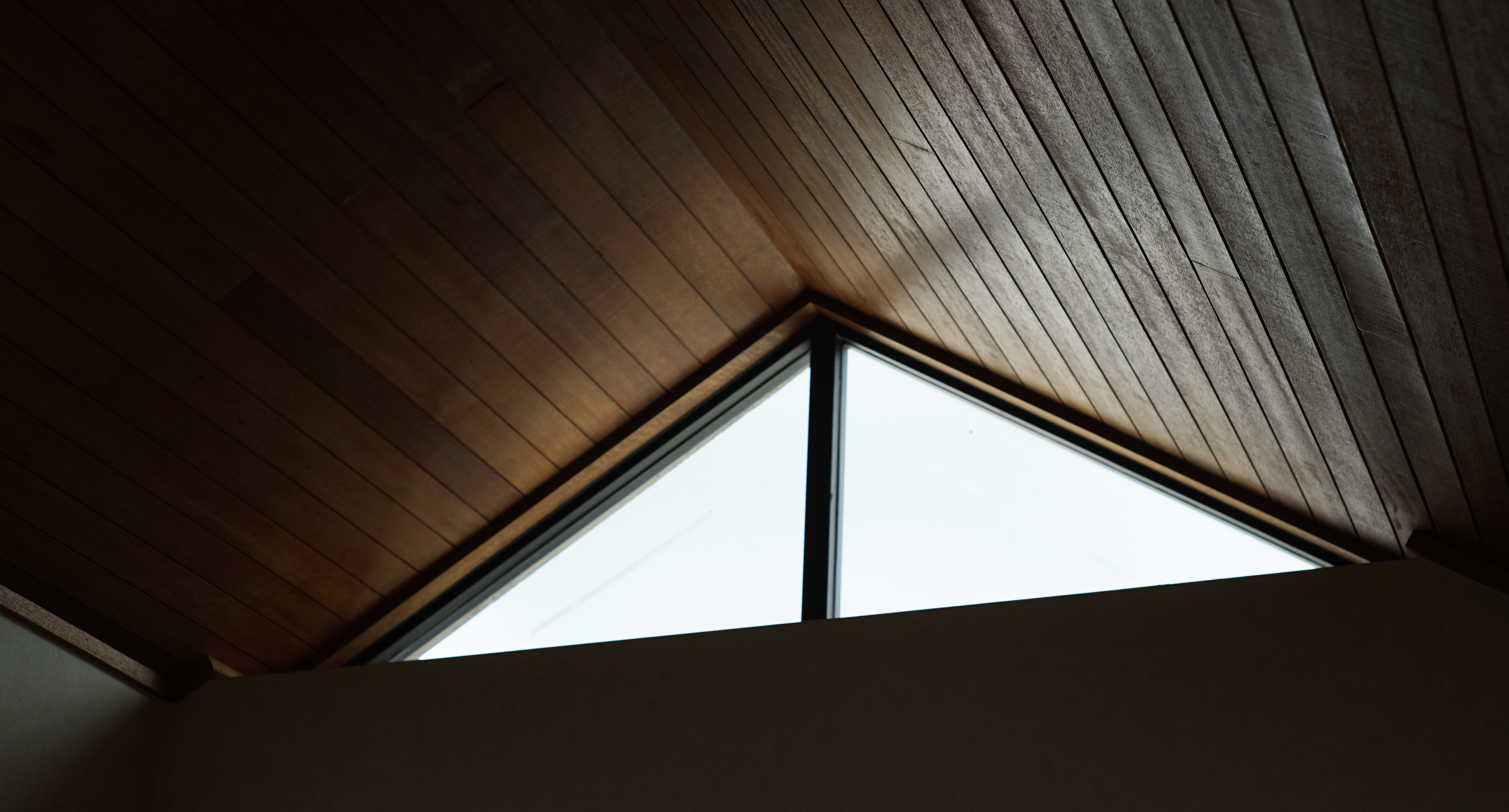 大きく斜めに切られた屋根には赤瓦が敷き詰められ、存在感があります。
