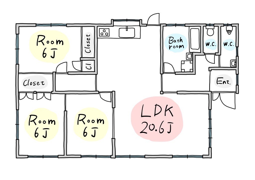 - ・間取り:3LDK ( 洋6J×3 / LDK20.6J )