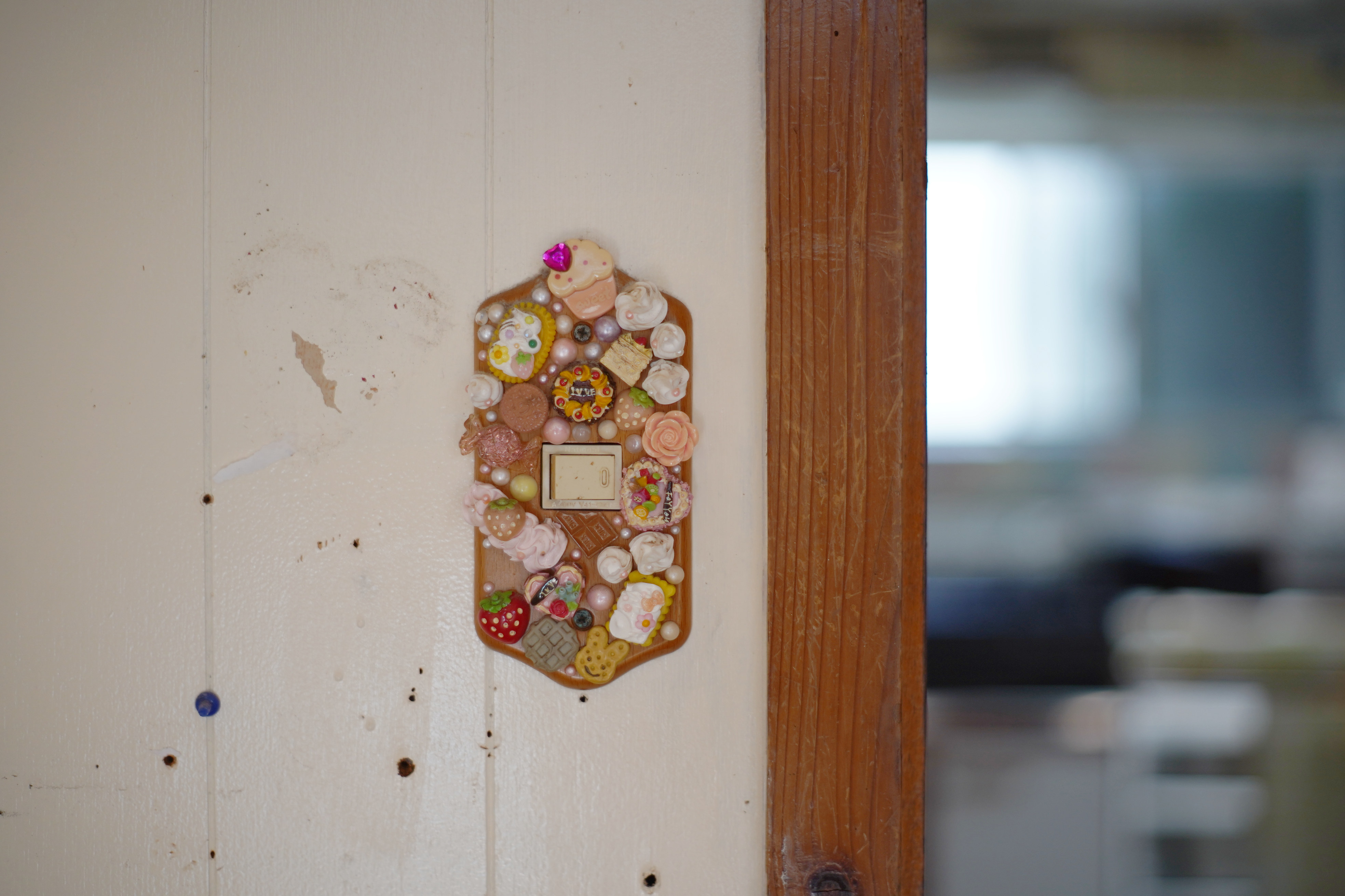 中に入ると、デコレーションされた電気スイッチやハートで彩られた壁が…。