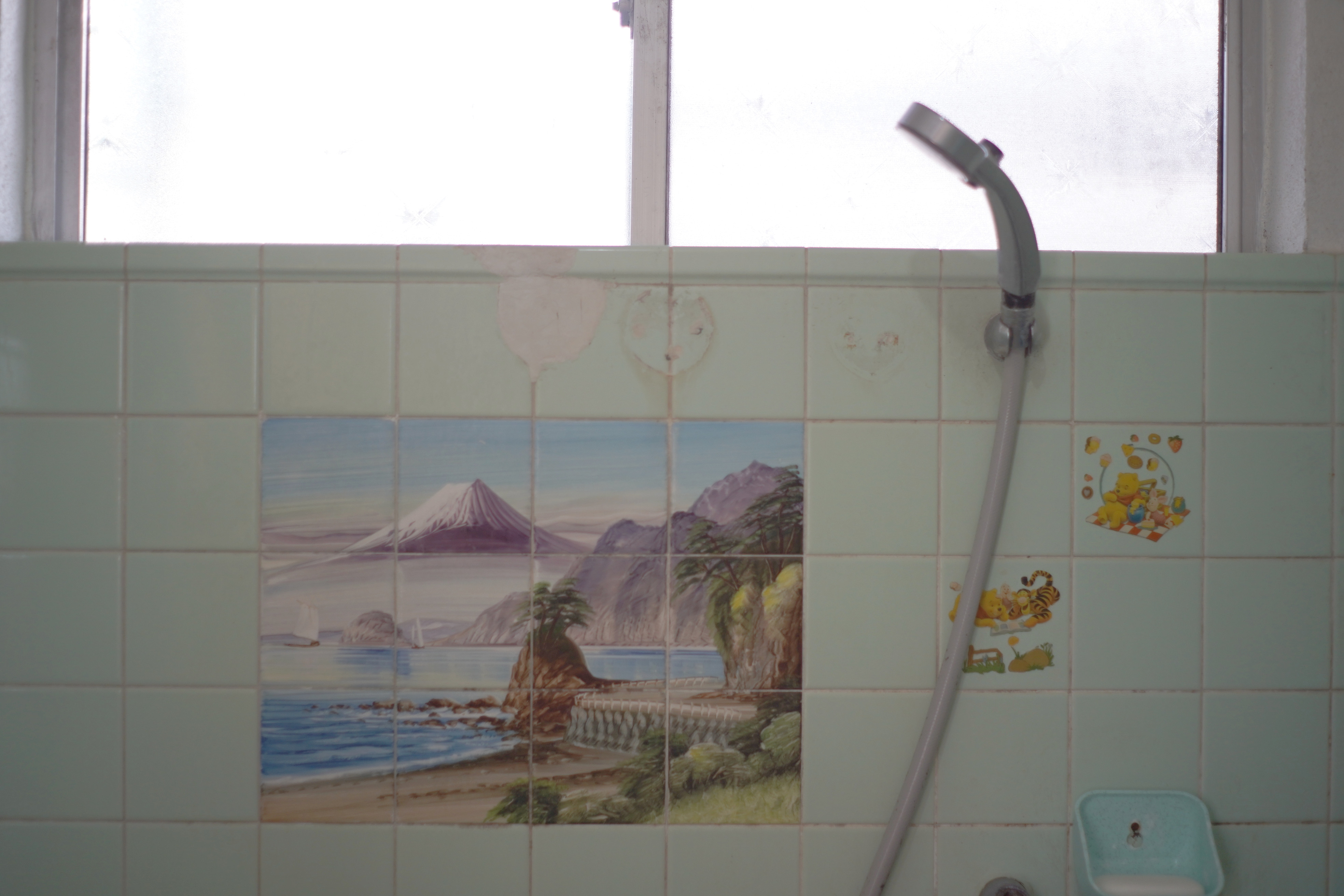 浴室には銭湯さながらの富士山のイラスト。気分は町の大浴場、あ~びばびば♪