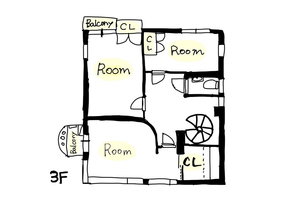 クルクルと3階へ上がります。お部屋は3部屋。(約9帖/約8帖/約6.5帖)