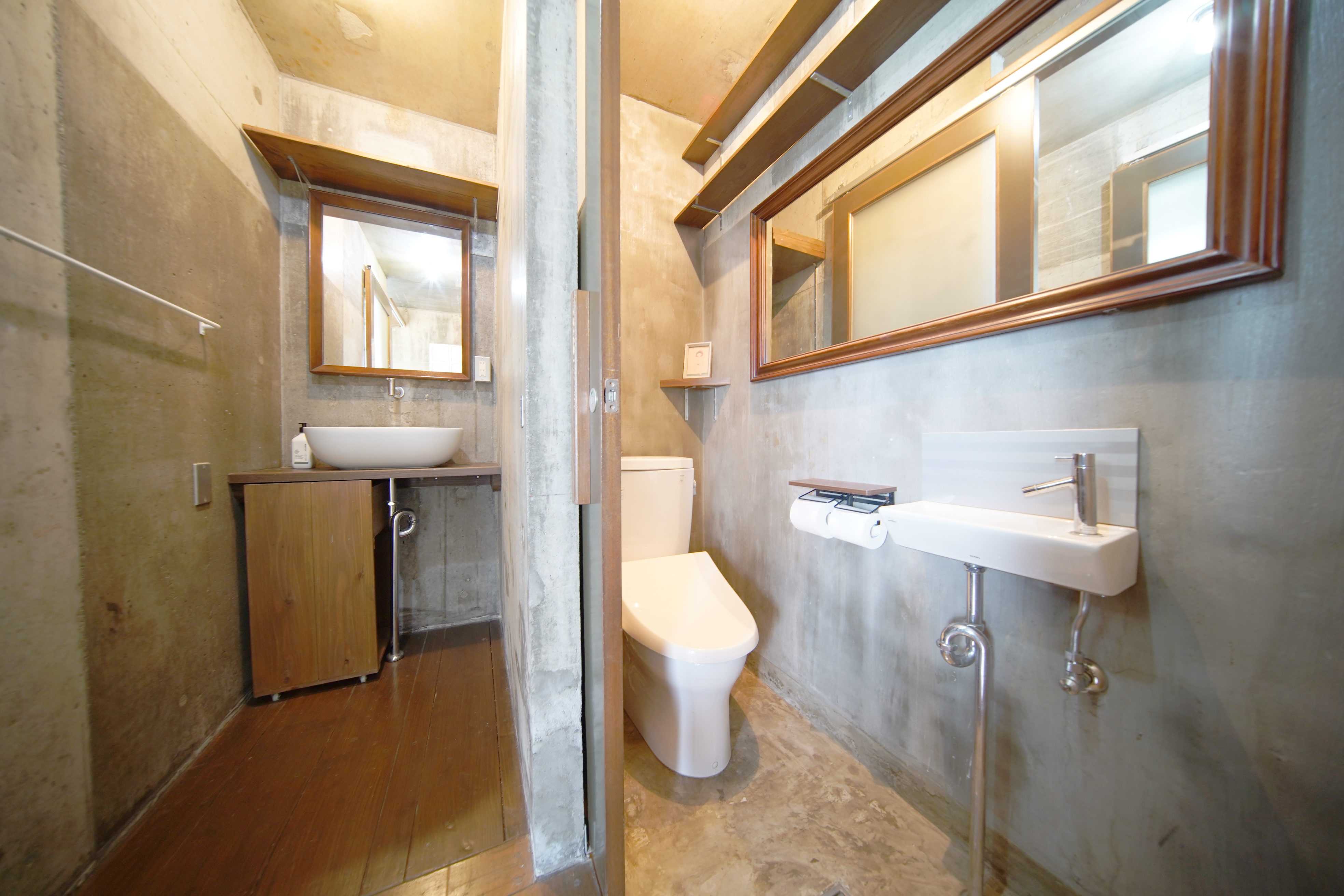 水回りもコンパクトながら、コンクリを基調とした統一された雰囲気でまとめられていますね。