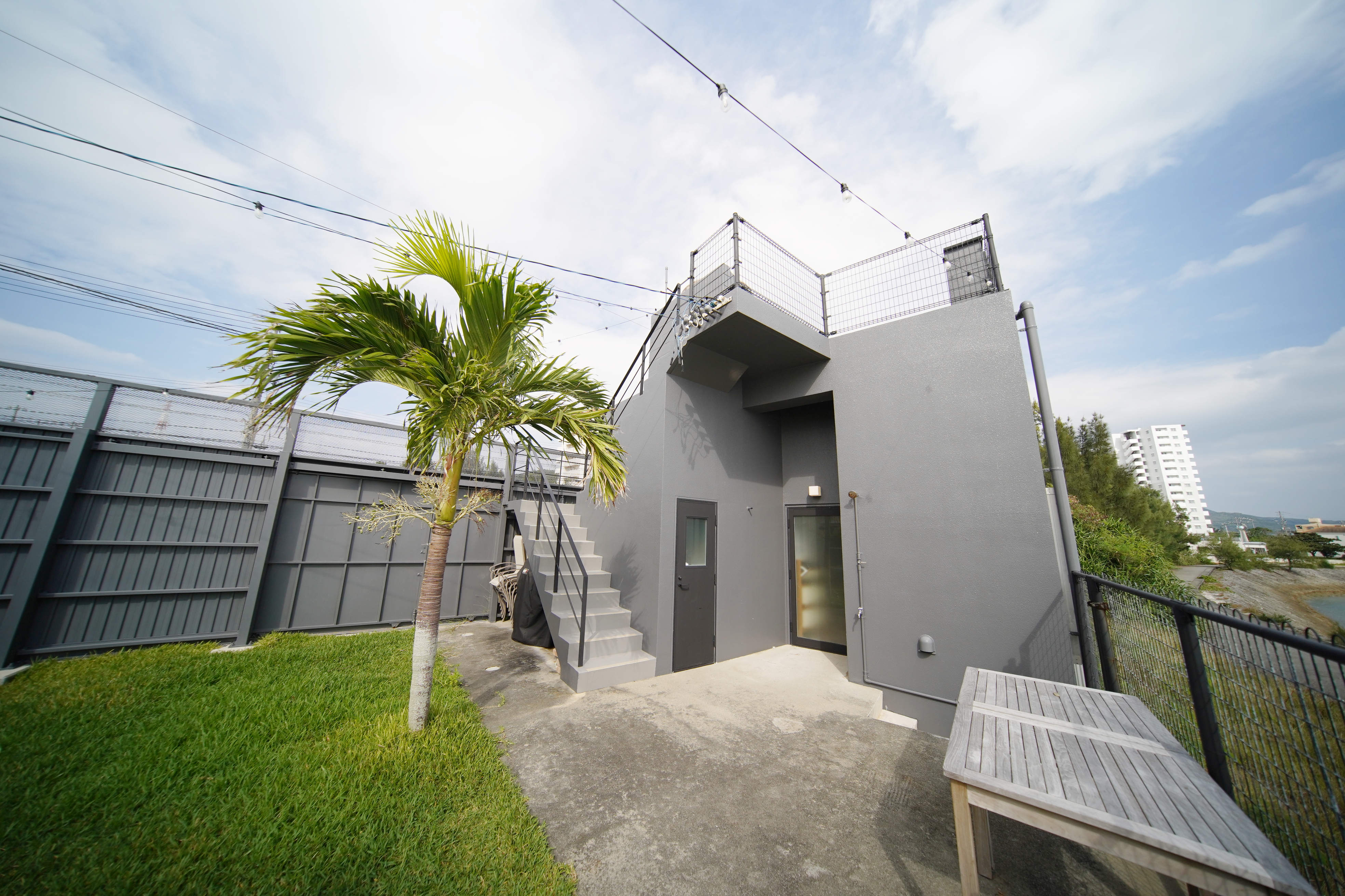 外階段を上がると屋上。カウンターもついており、海を眺めながら仲間とバーベキューなんかもできちゃう。