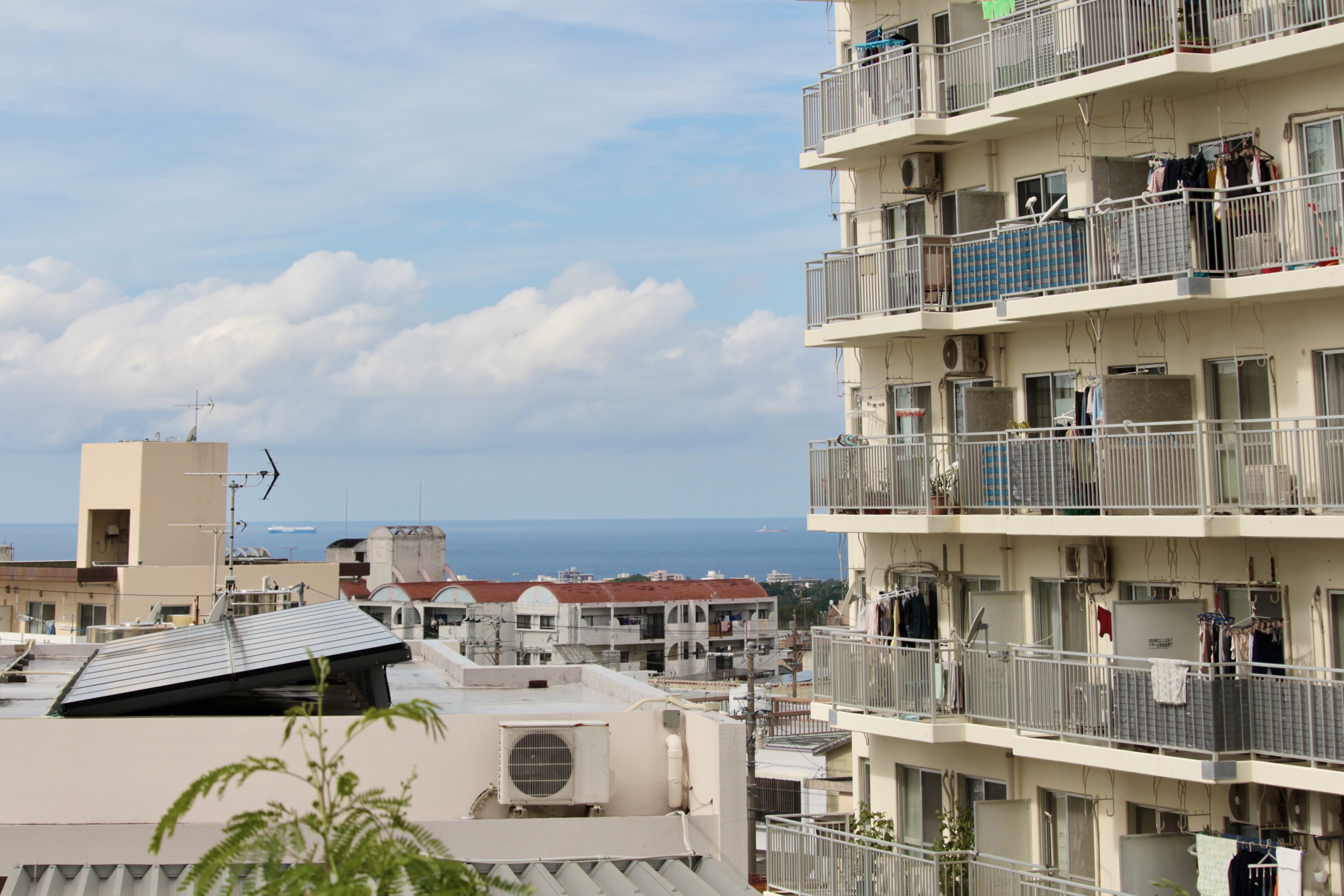 主要採光のサッシからは美浜の海岸から那覇まで見渡せる絶景ビューが自慢です。