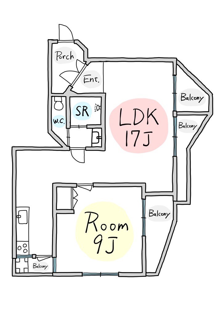 ベランダは合計4カ所にも分かれていて、半分お部屋みたいなスペースもございます。