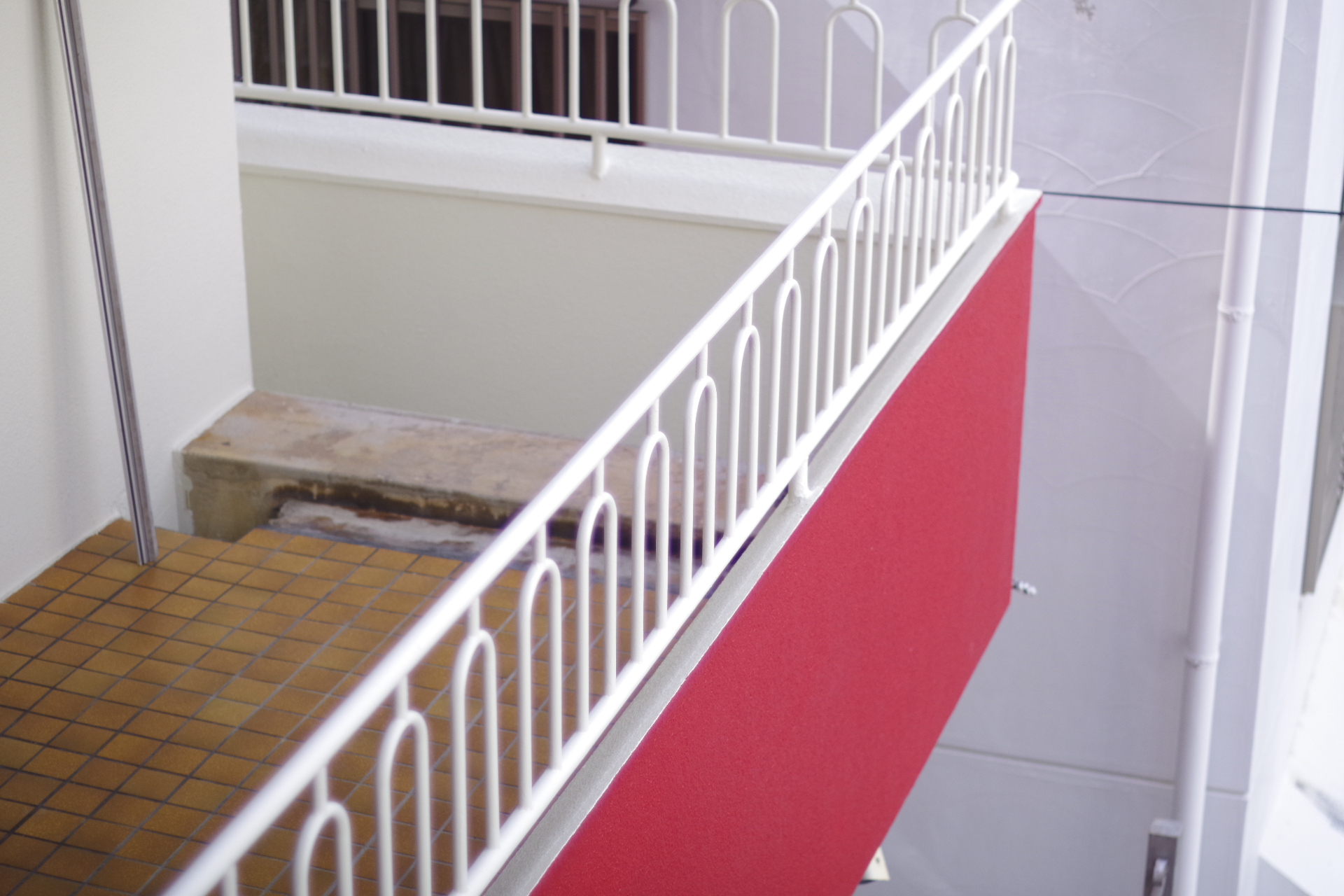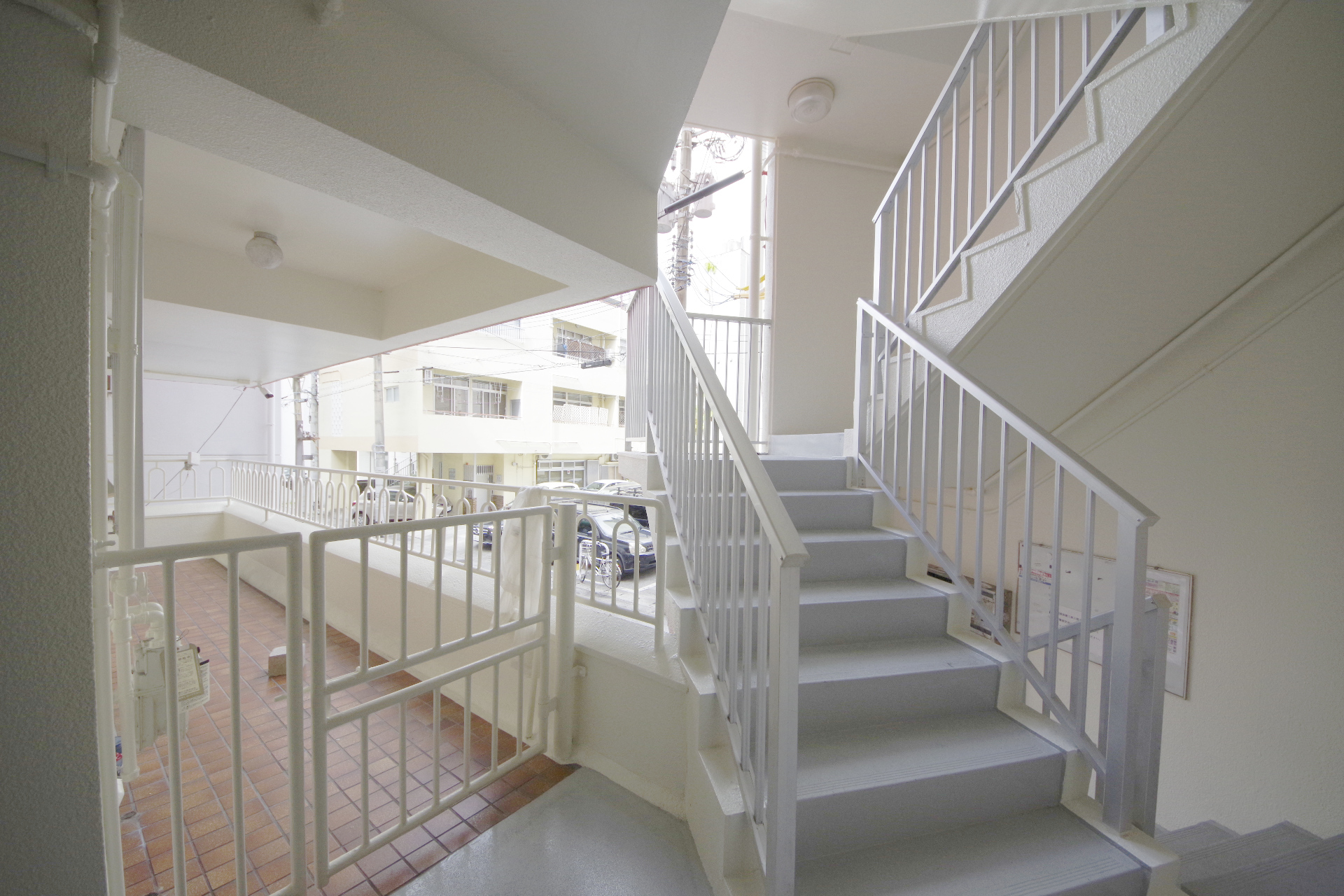 共用部分の階段もなんだか入り組んだように見える造り。