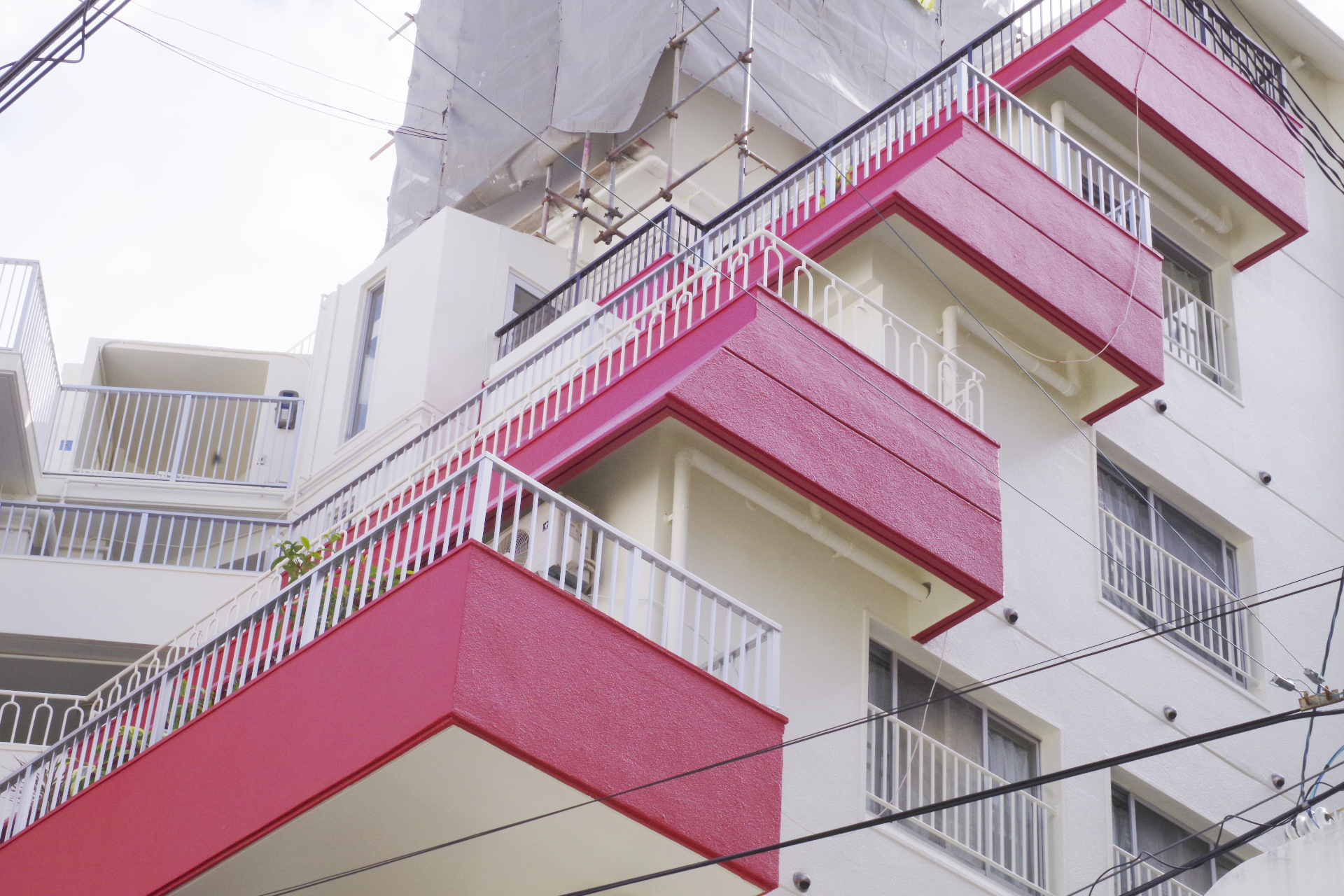 キレイに外壁塗装がなされ、赤と白のコントラストが美しい…。