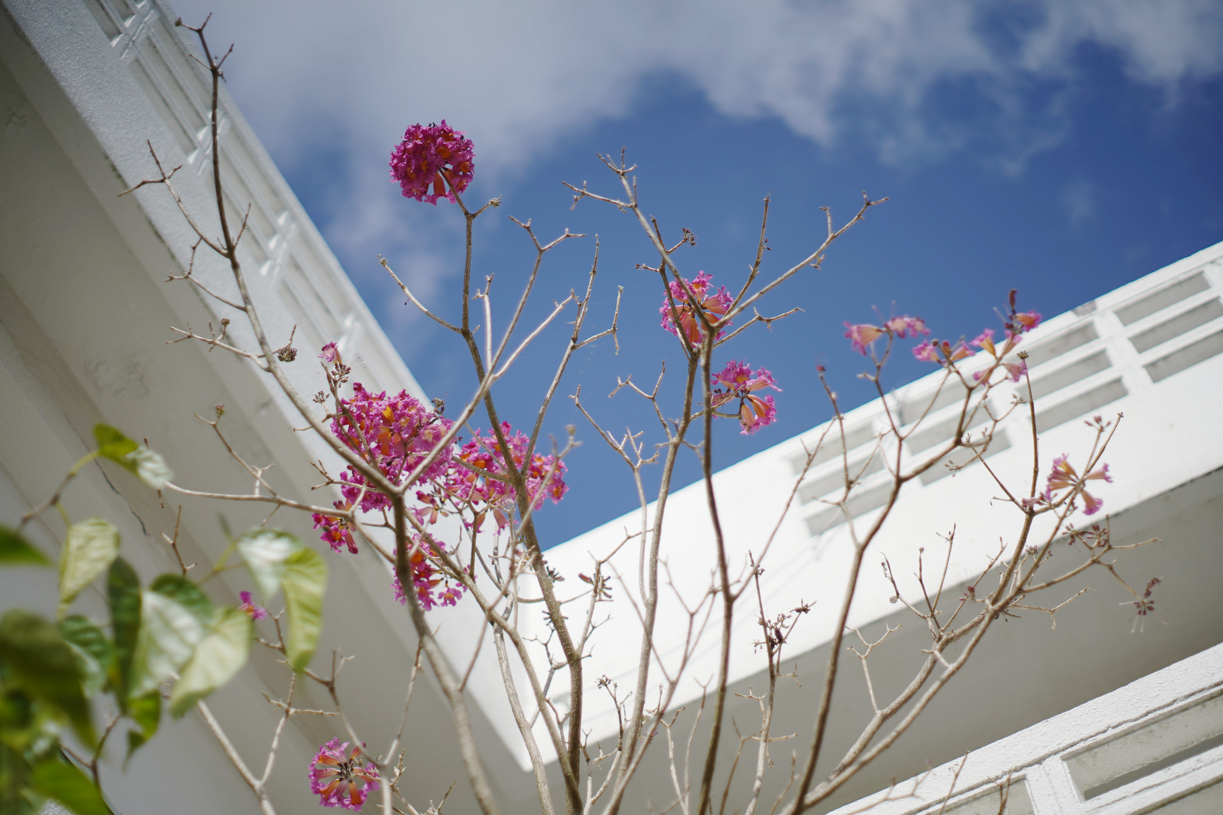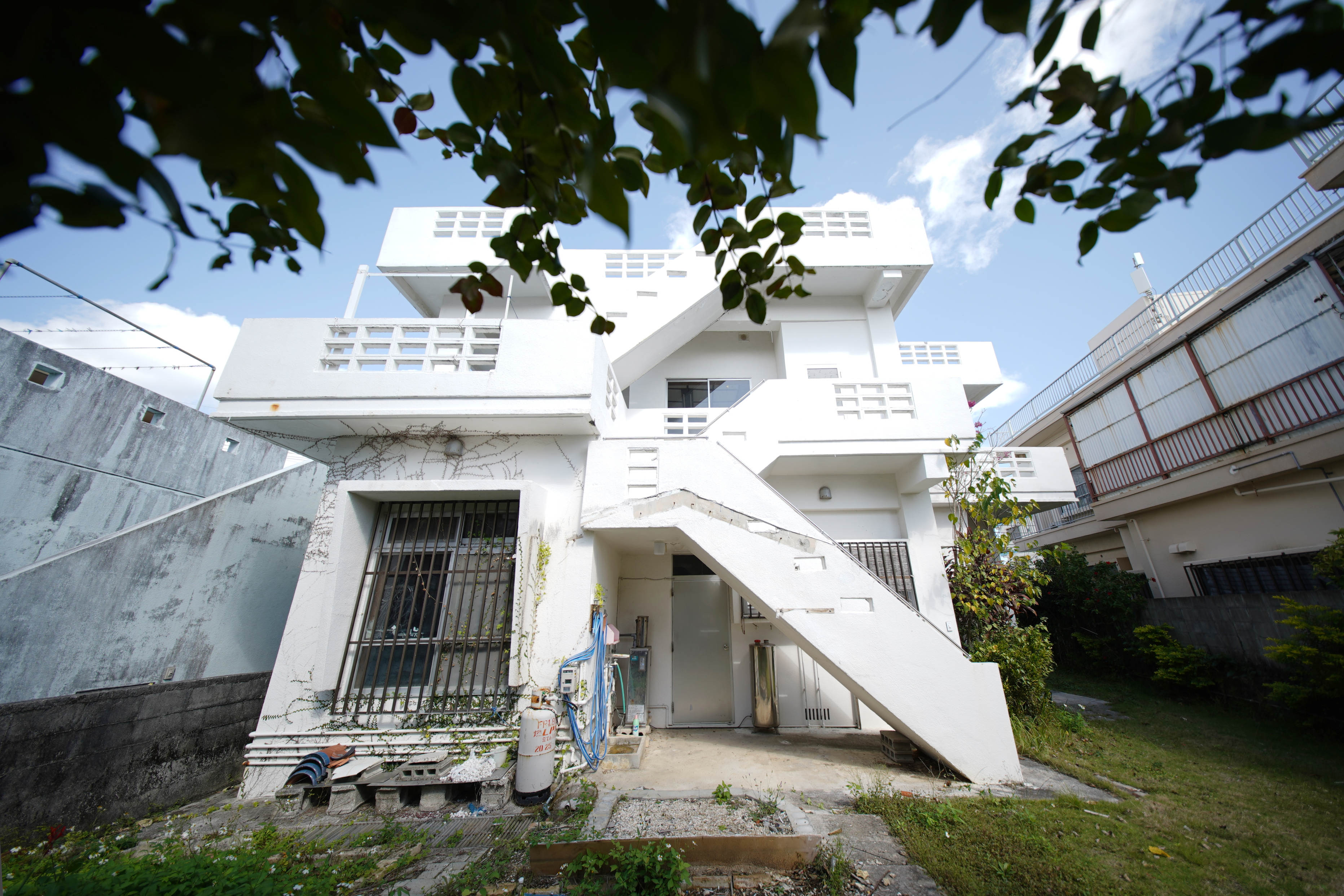 築50年越えのこちらの建物。花ブロックが素敵な真っ白な外観の堂々たる立ち姿。