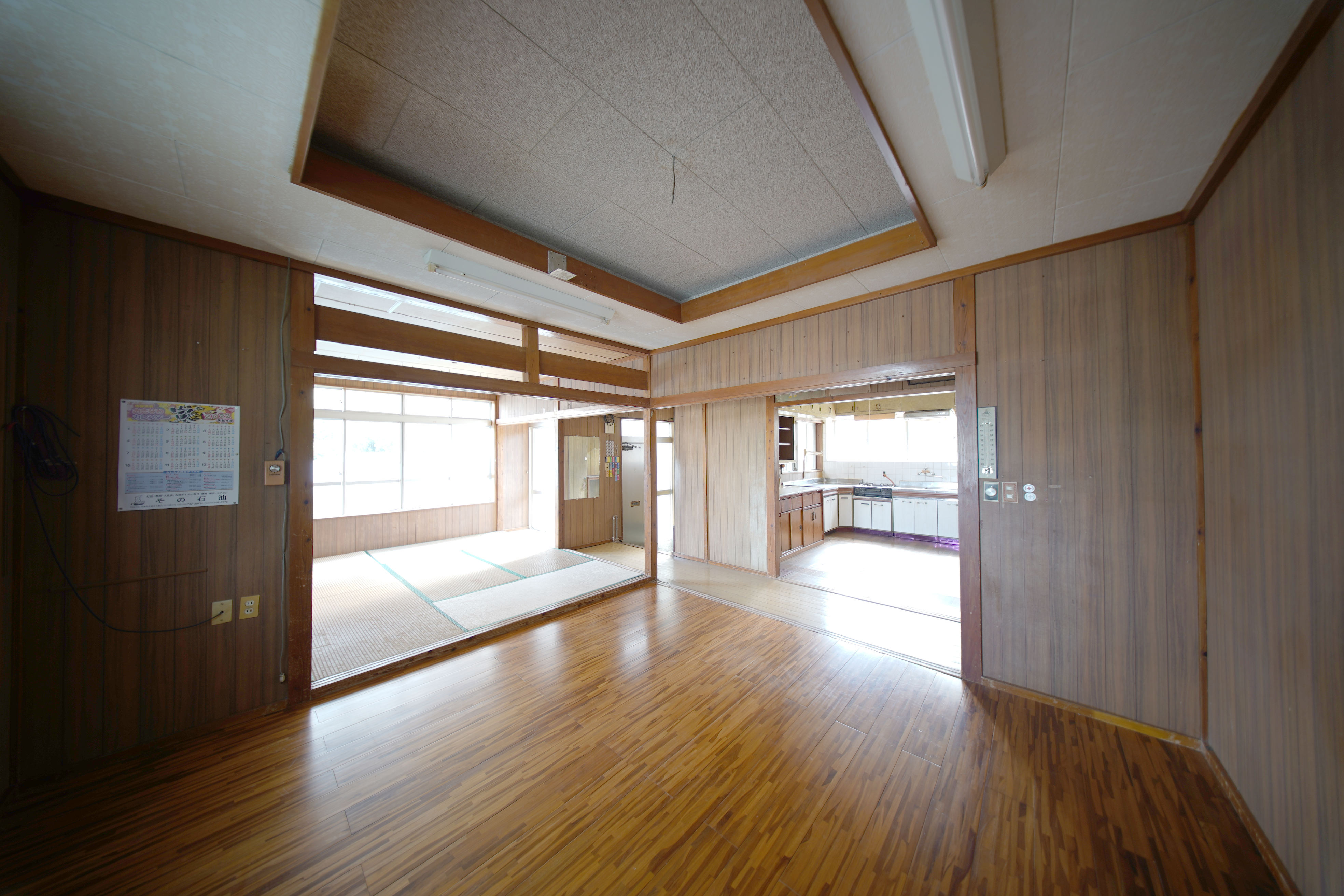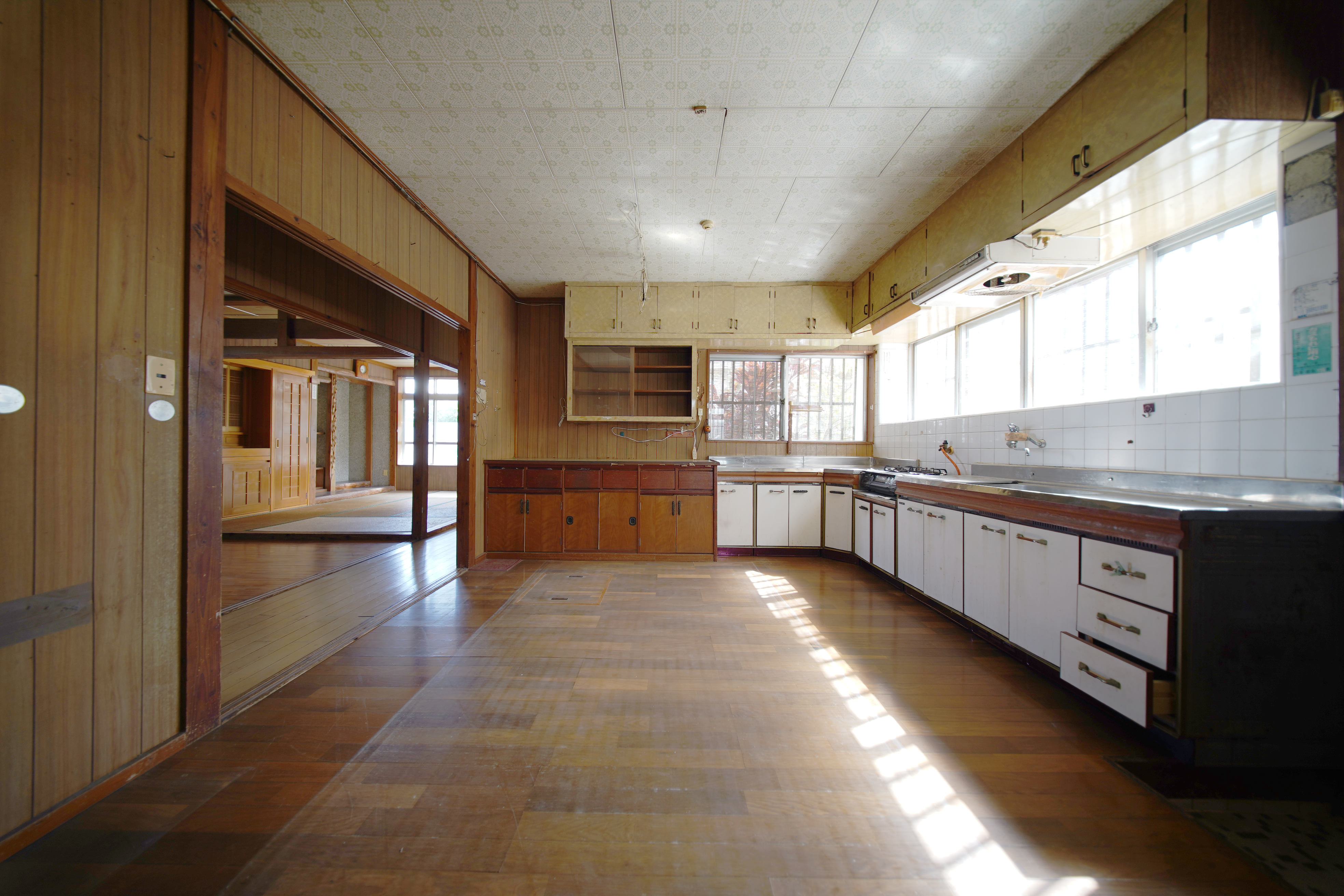 光がたくさん入り込む、床の間もある畳の居間。広々としたL字のキッチン。