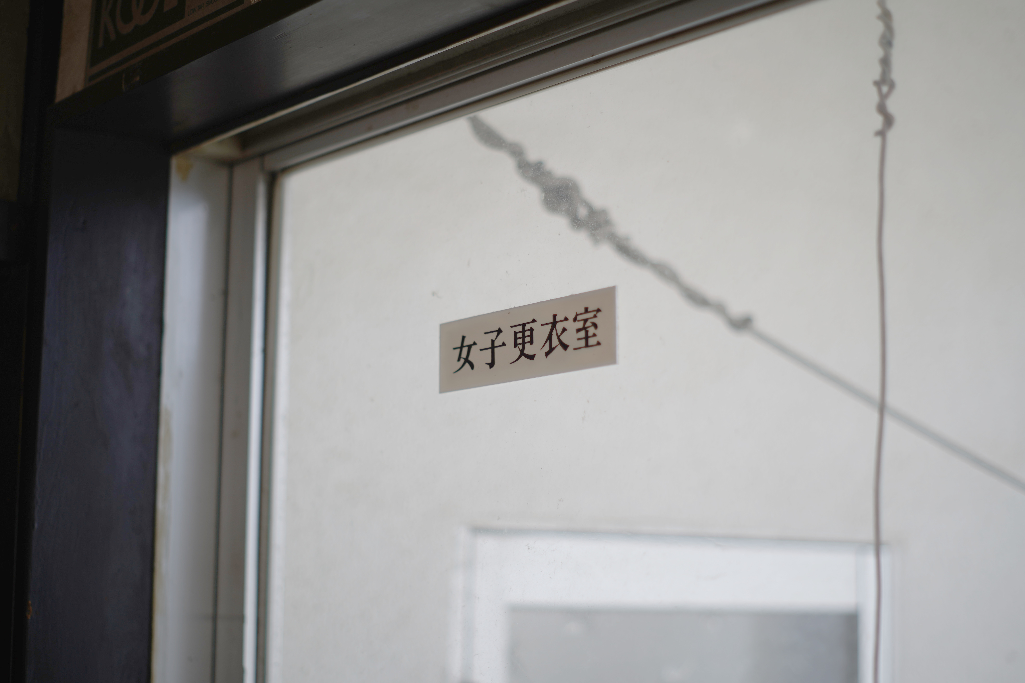 テラスに出る窓には「女子更衣室」の表示が…。もう意味が分かりません。