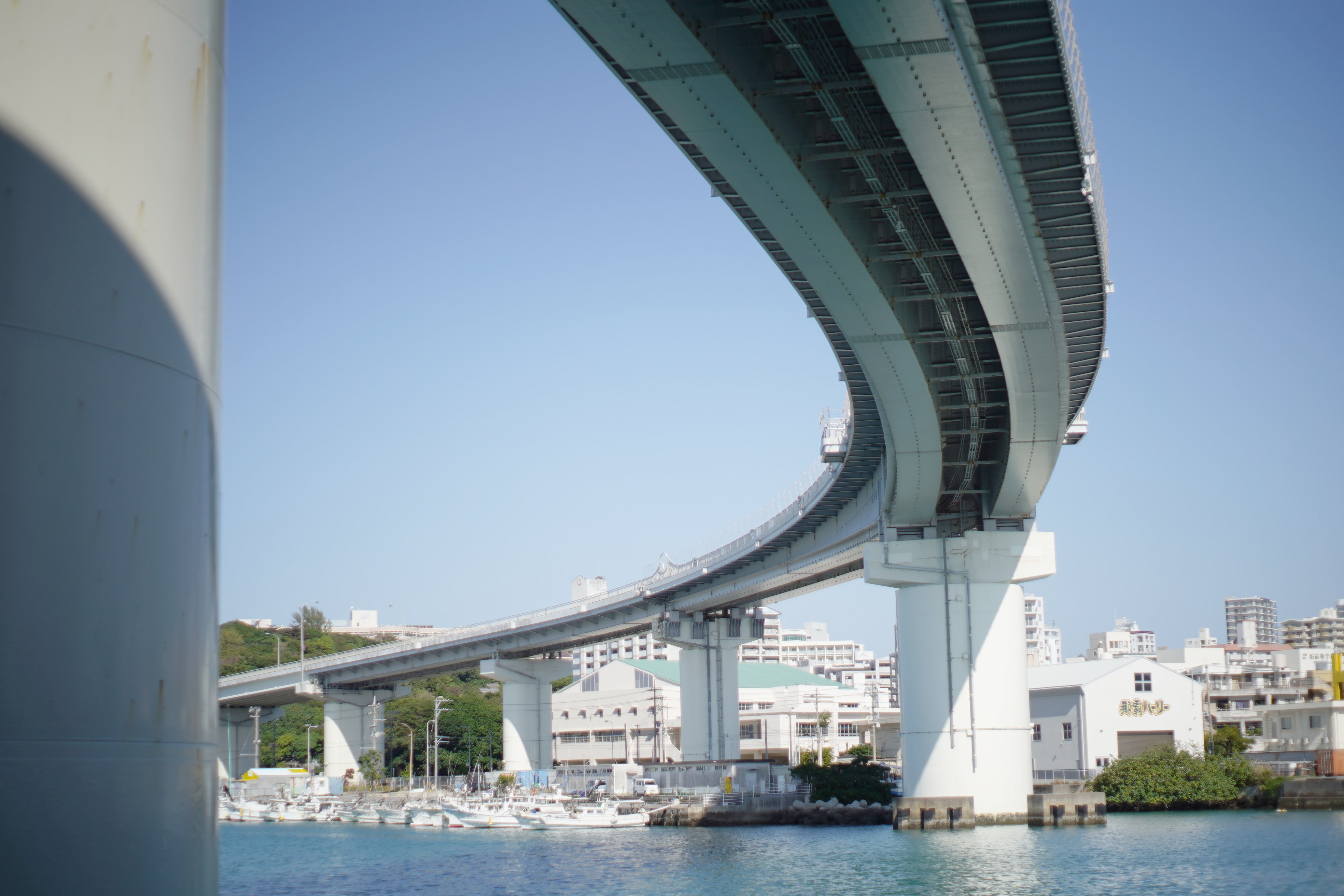泊大橋の美しい曲線を見ながら、離島へ向かう船の汽笛が何度も響きます。