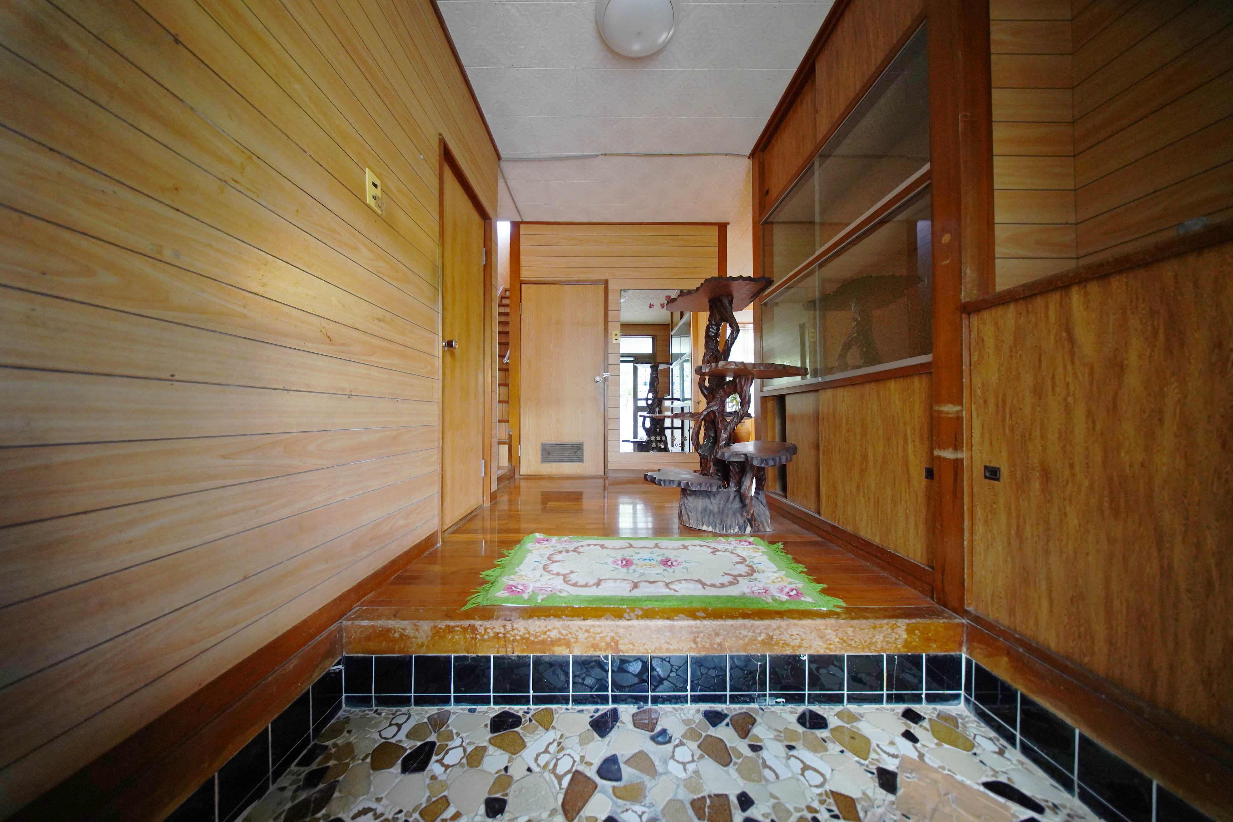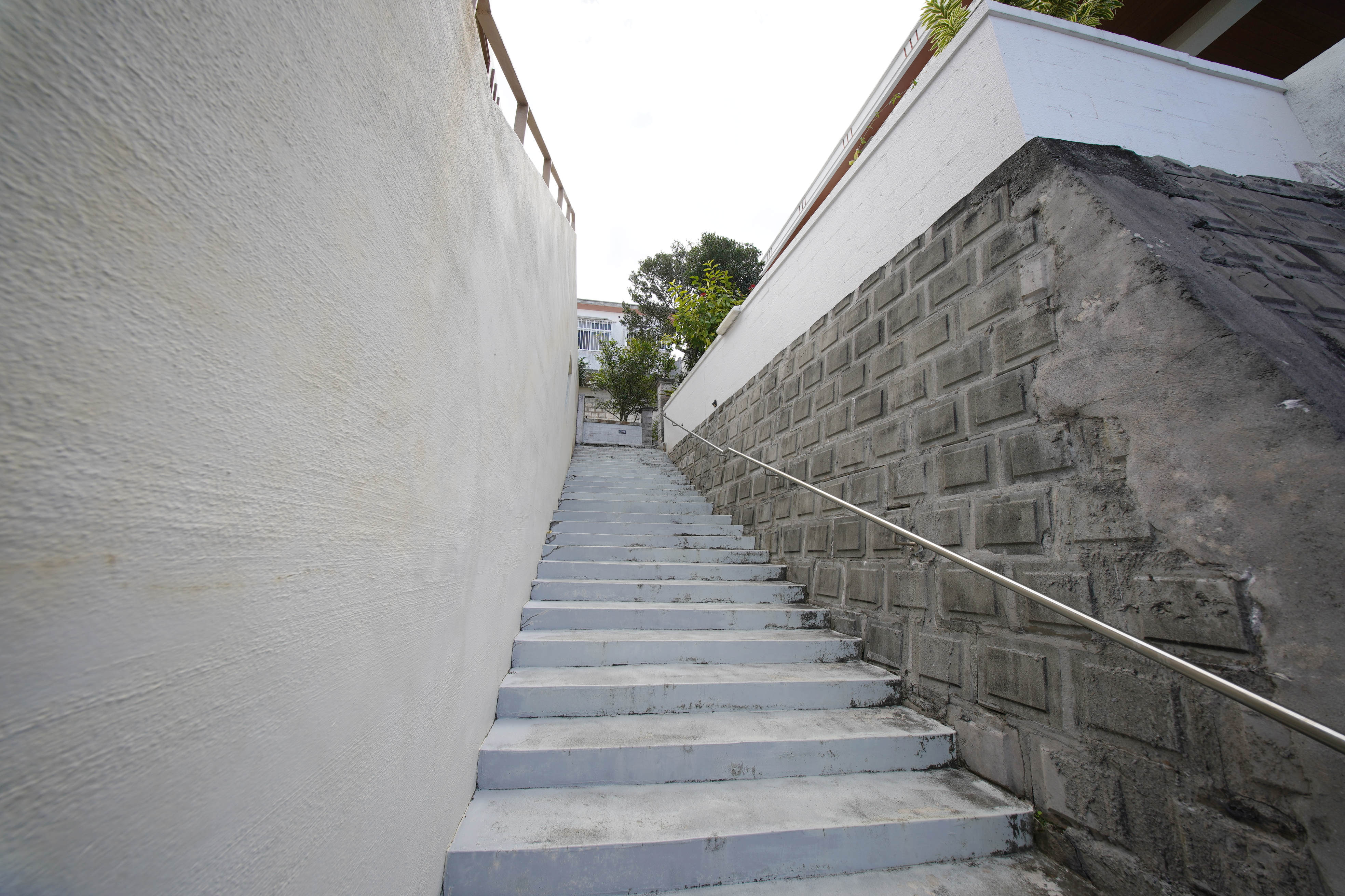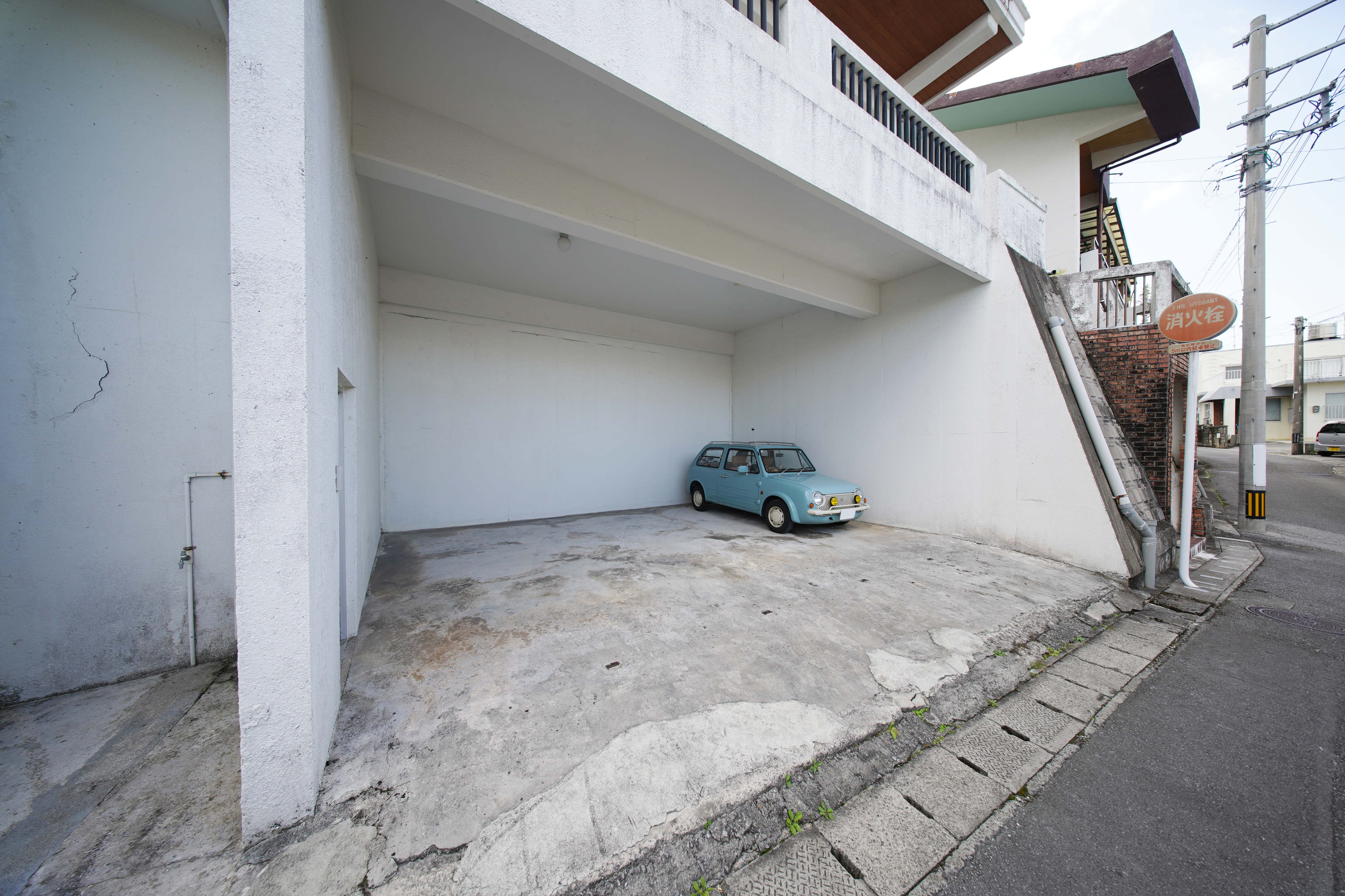 ガレージの左手にある階段を上って、いざ建物内へ!