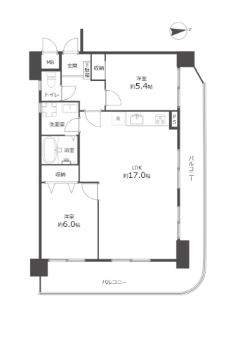 - 建物:2LDK(LDK17J/洋6J/洋5.4J) 62.40㎡