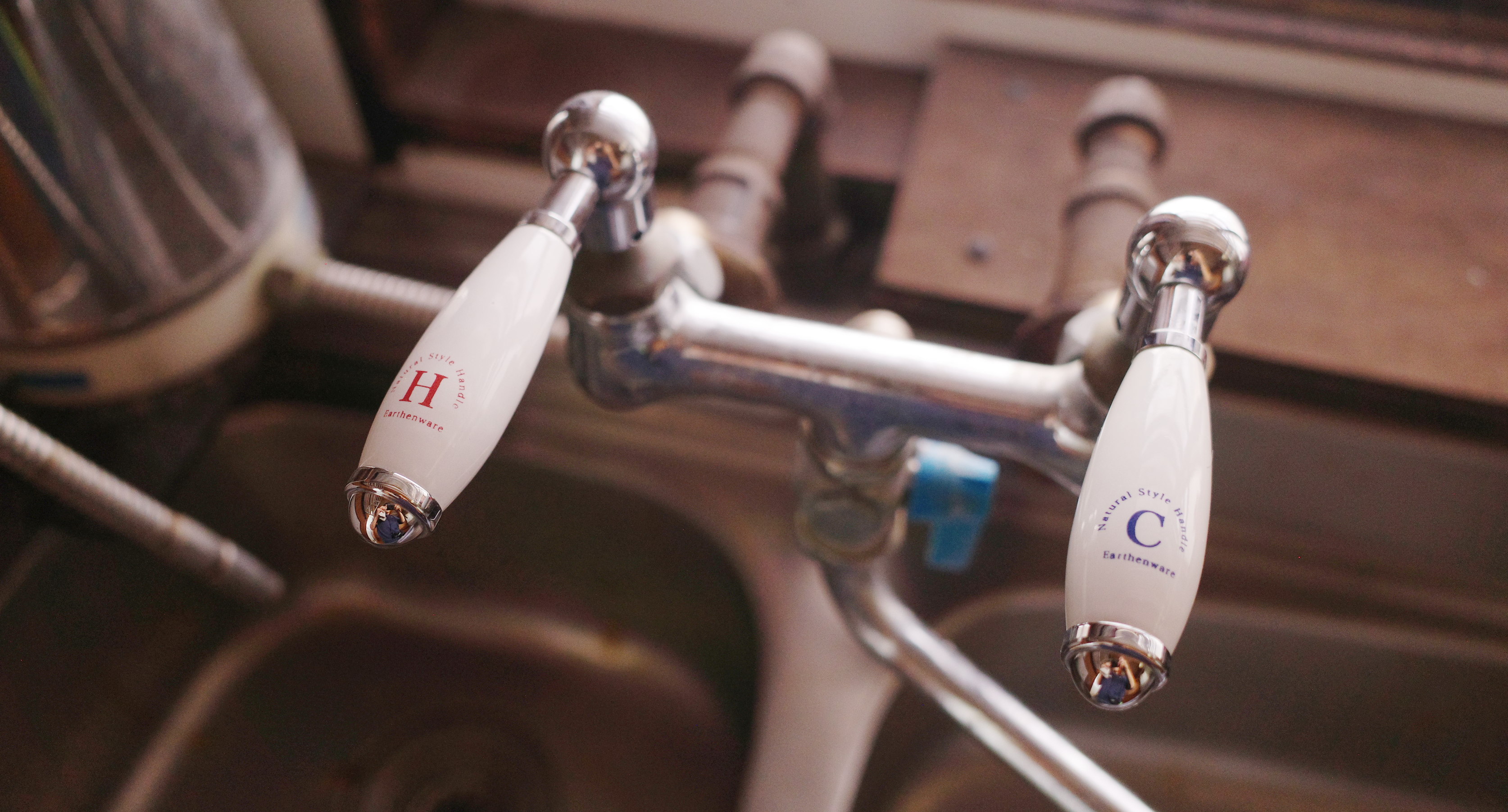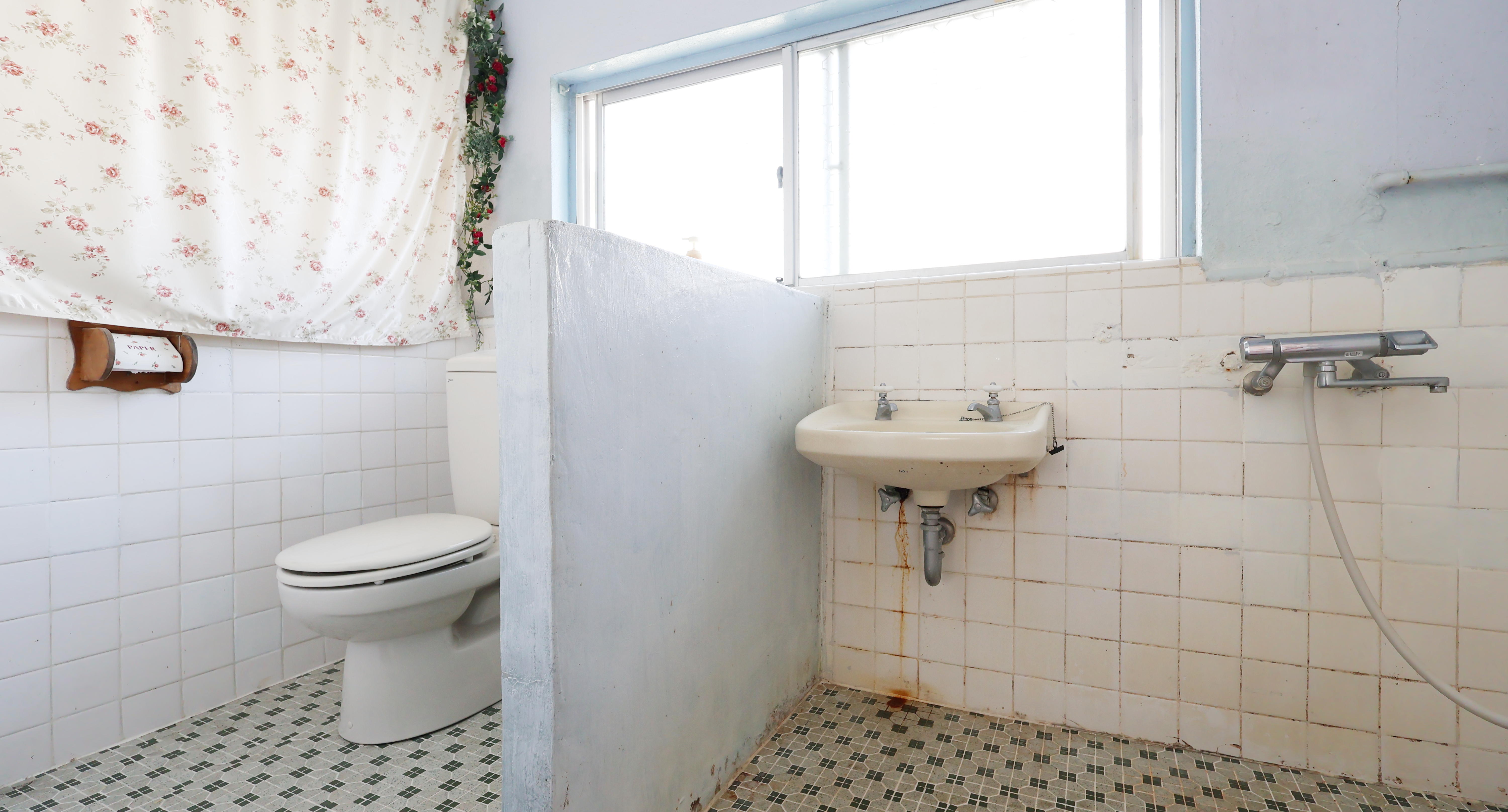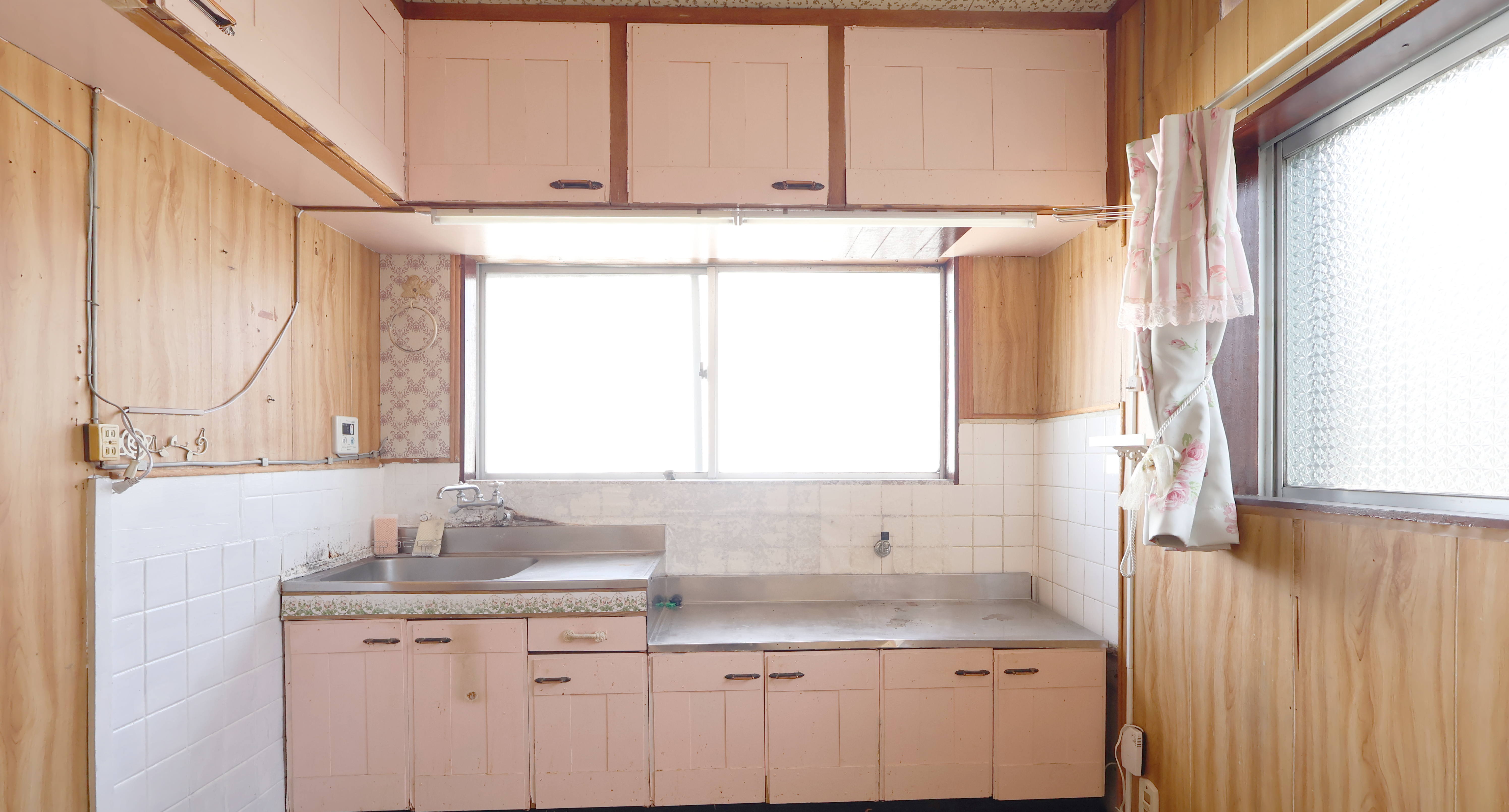 キッチンには陶器の蛇口があり、窓も懐かしい木枠に昭和ガラス。