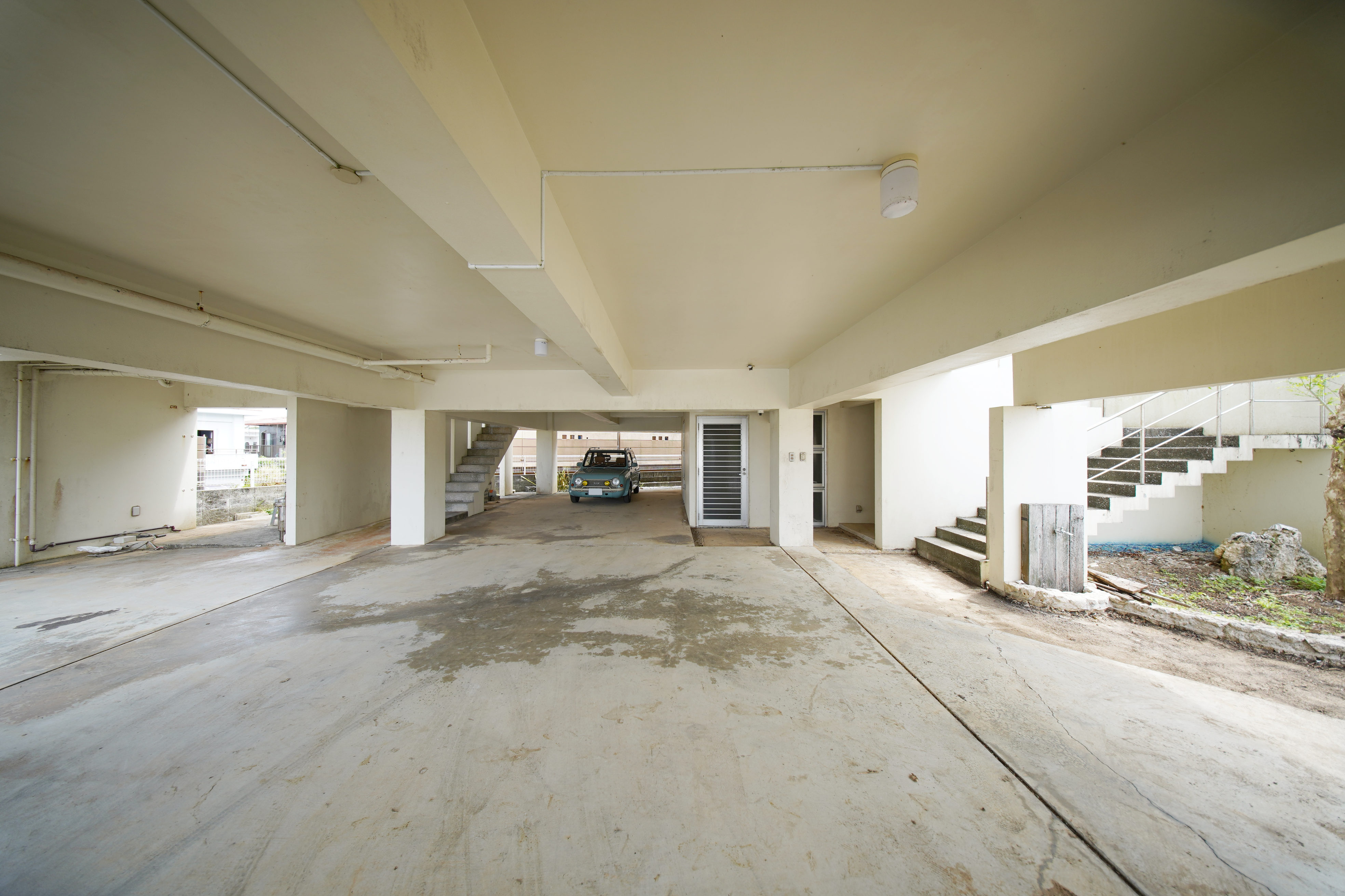 1階はピロティとなっており、いったい車が何台停められるんだ?と数えてしまうほどの広さ…。