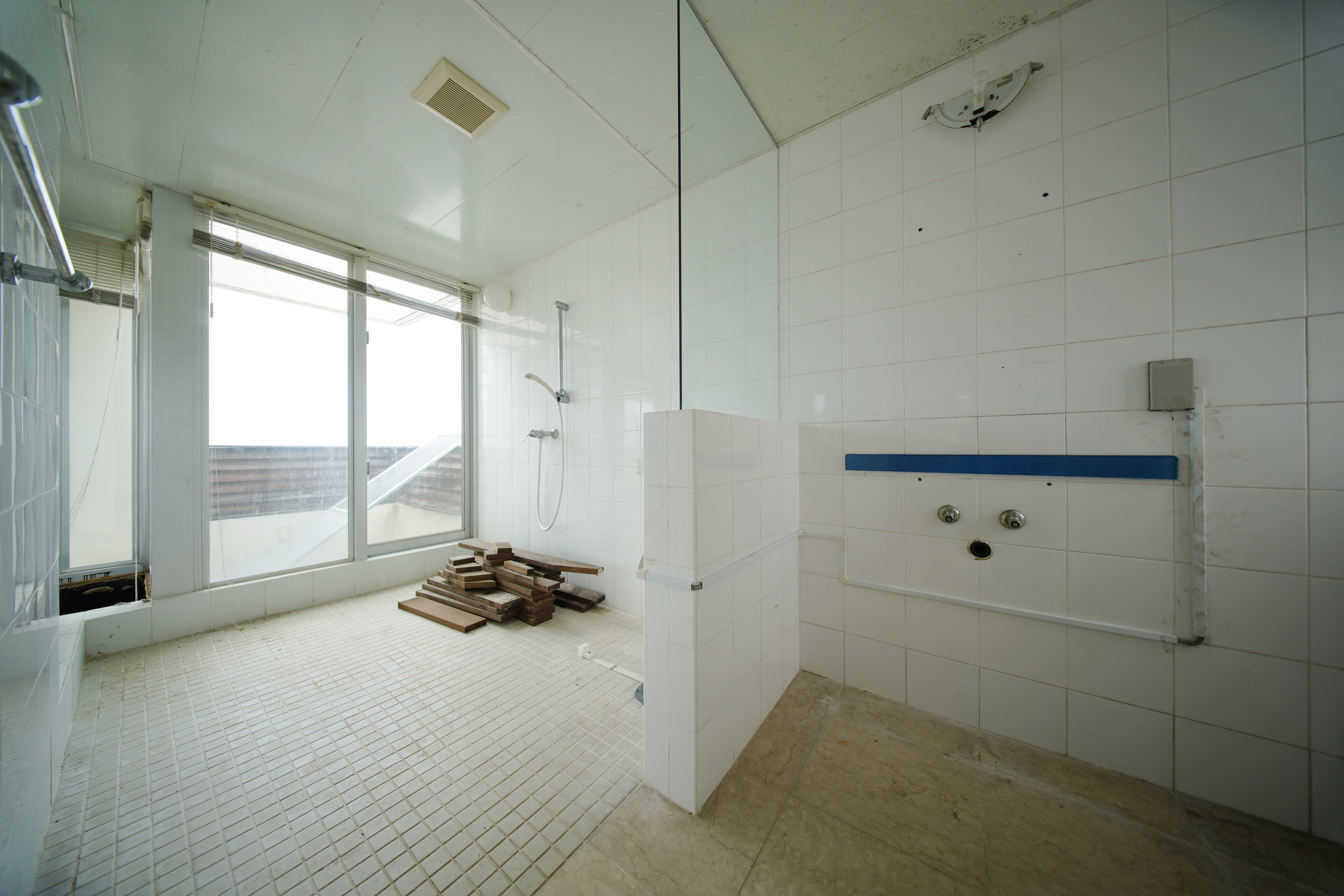 奥に進むと浴室。こちらもリフォーム中なので、浴槽は現在ありません。