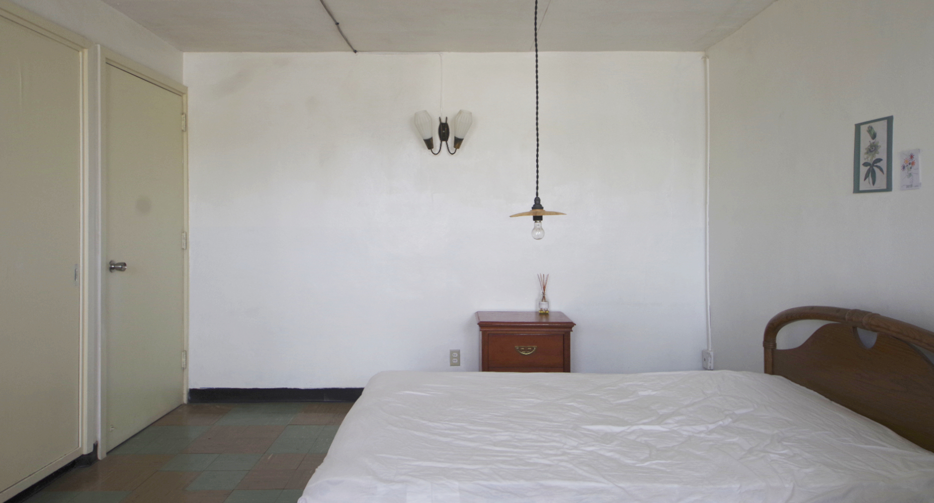 築40年以上の平屋の鉄筋コンクリート造りの戸建てで、壁はコンクリートにペンキを直塗り
