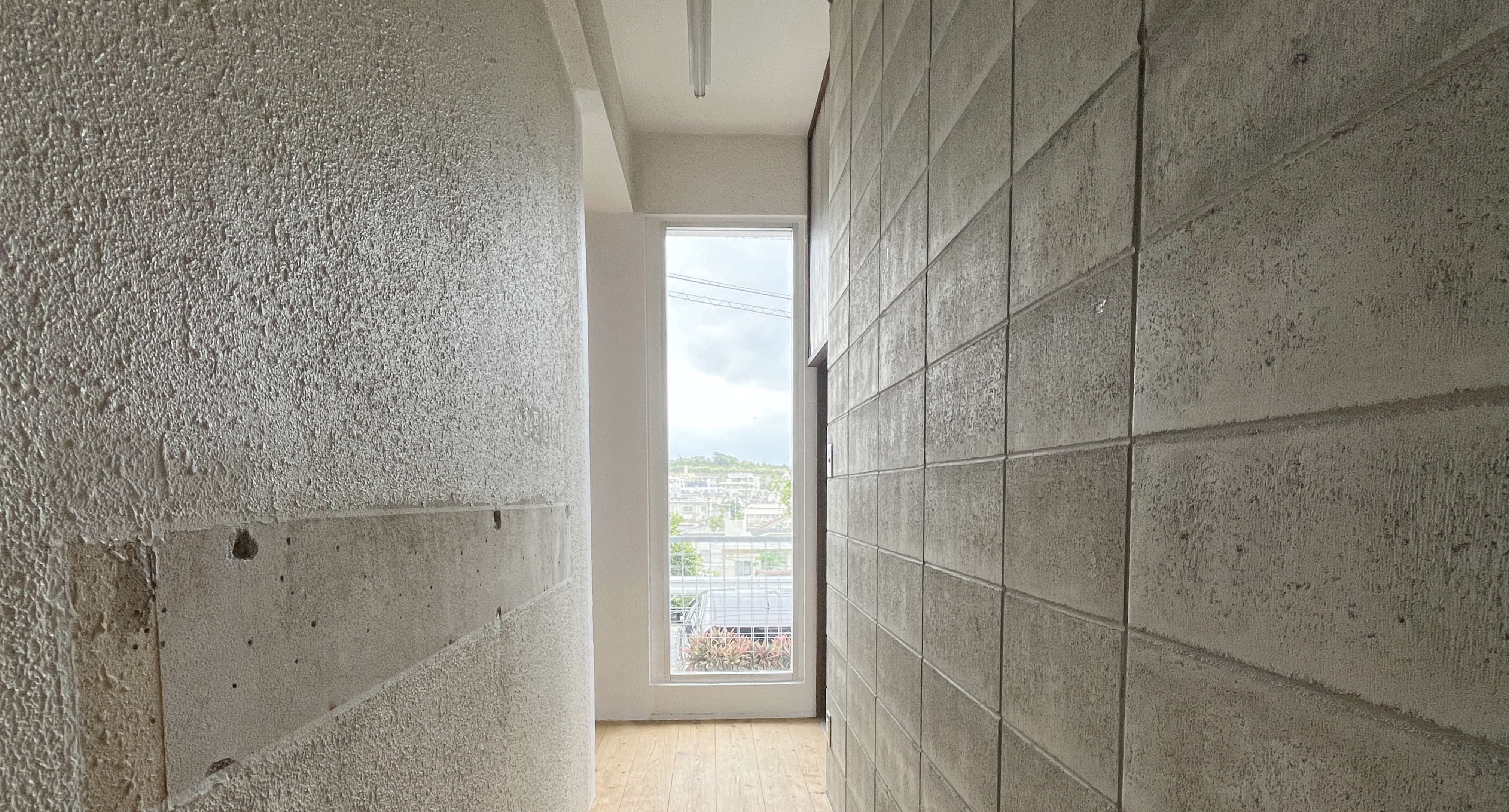 築49年の建物の壁や屋根を解体して剥がした状態のコンクリートブロックがむき出し