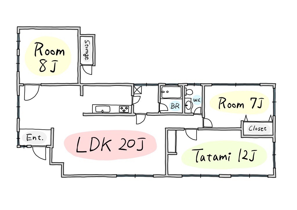 - 間取り:3LDK ( 洋8J / 洋7J / 和12J / LDK20J )