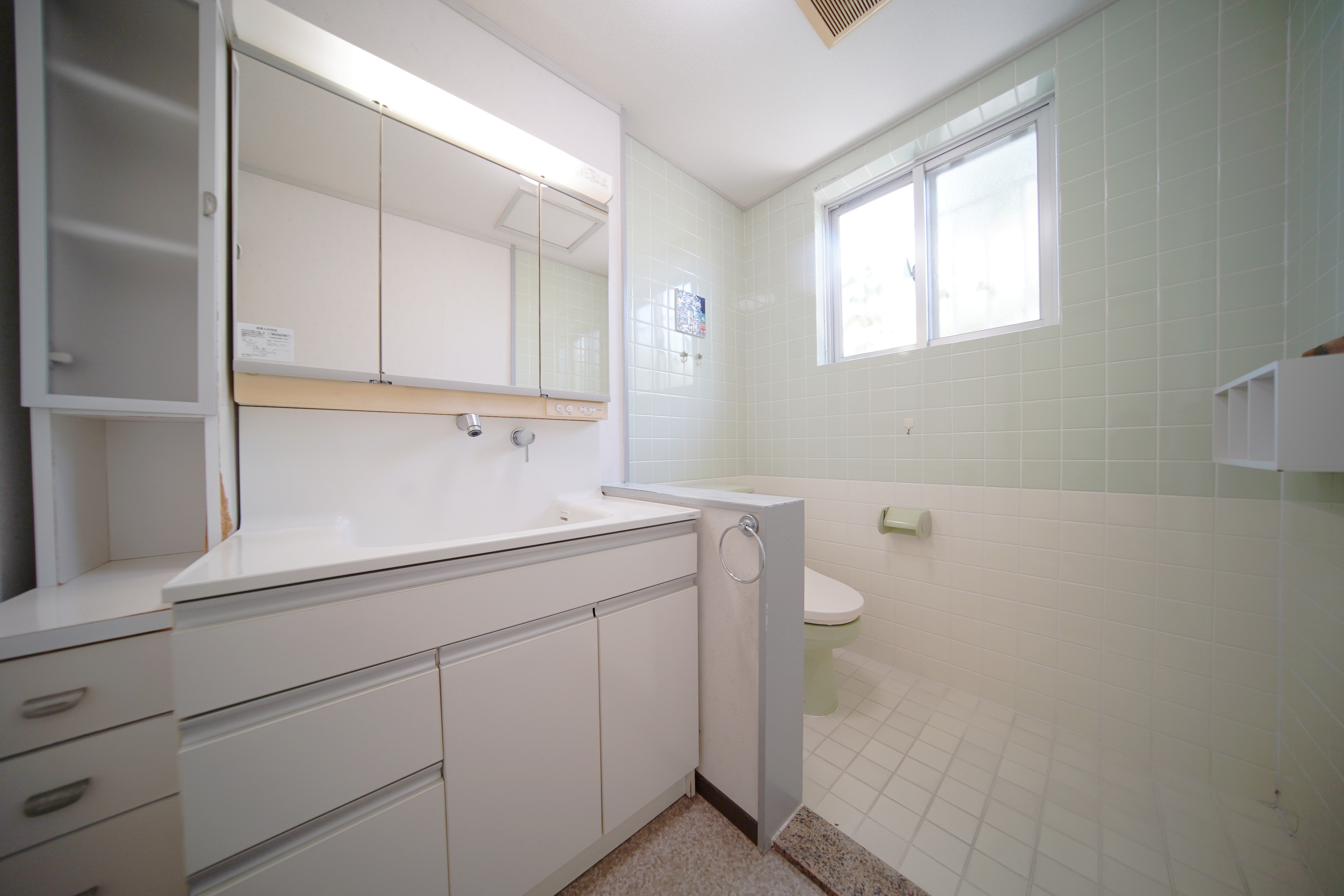 おとなりにはお手洗い。洗面台には曇り止めの機能もついています。トイレもゆったりと仕切られているので、圧迫感を感じませんね。