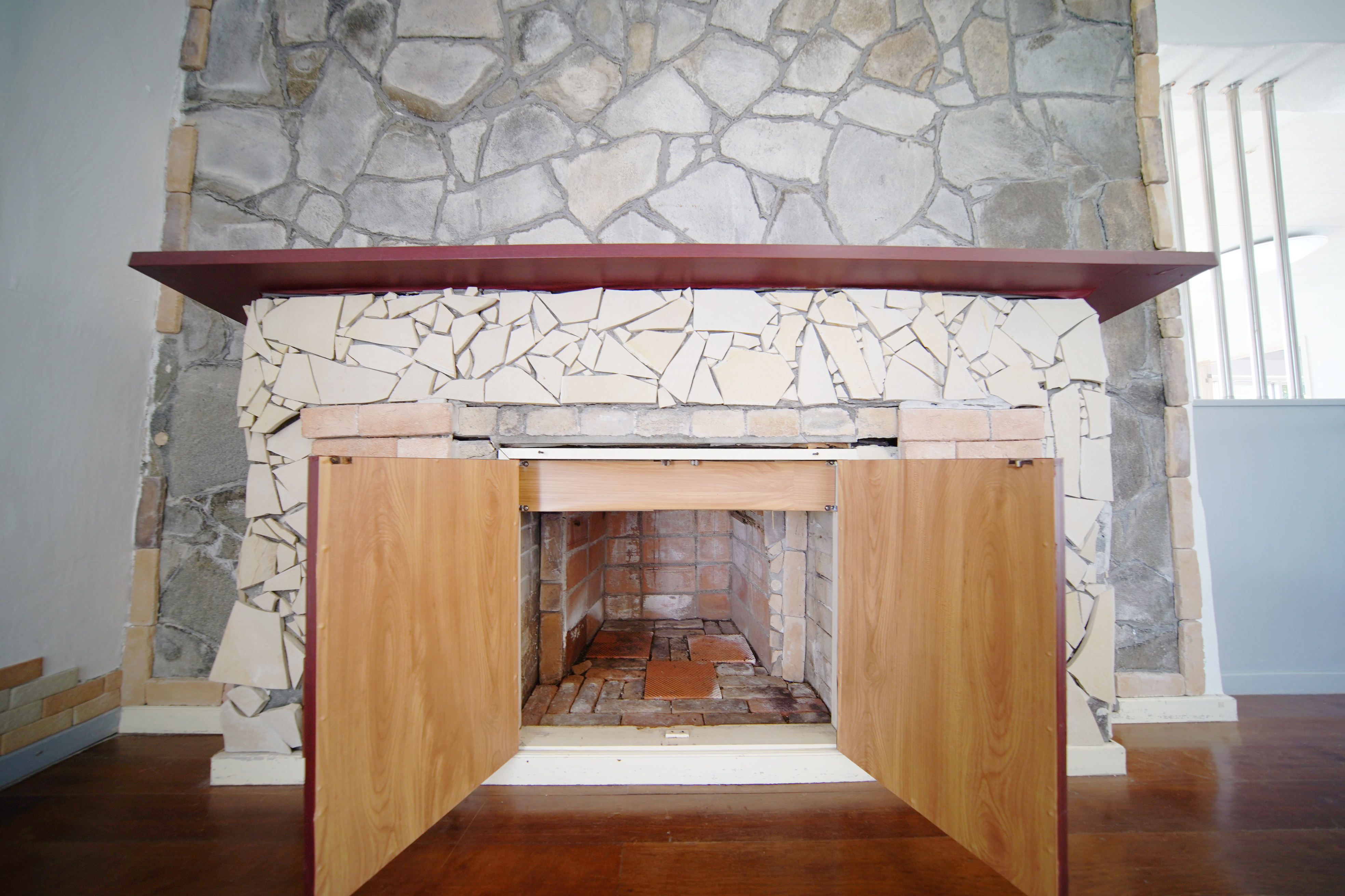 リビングに入ると、何と暖炉が…。外観で気になっていた煙突の正体はこれだったんですね。