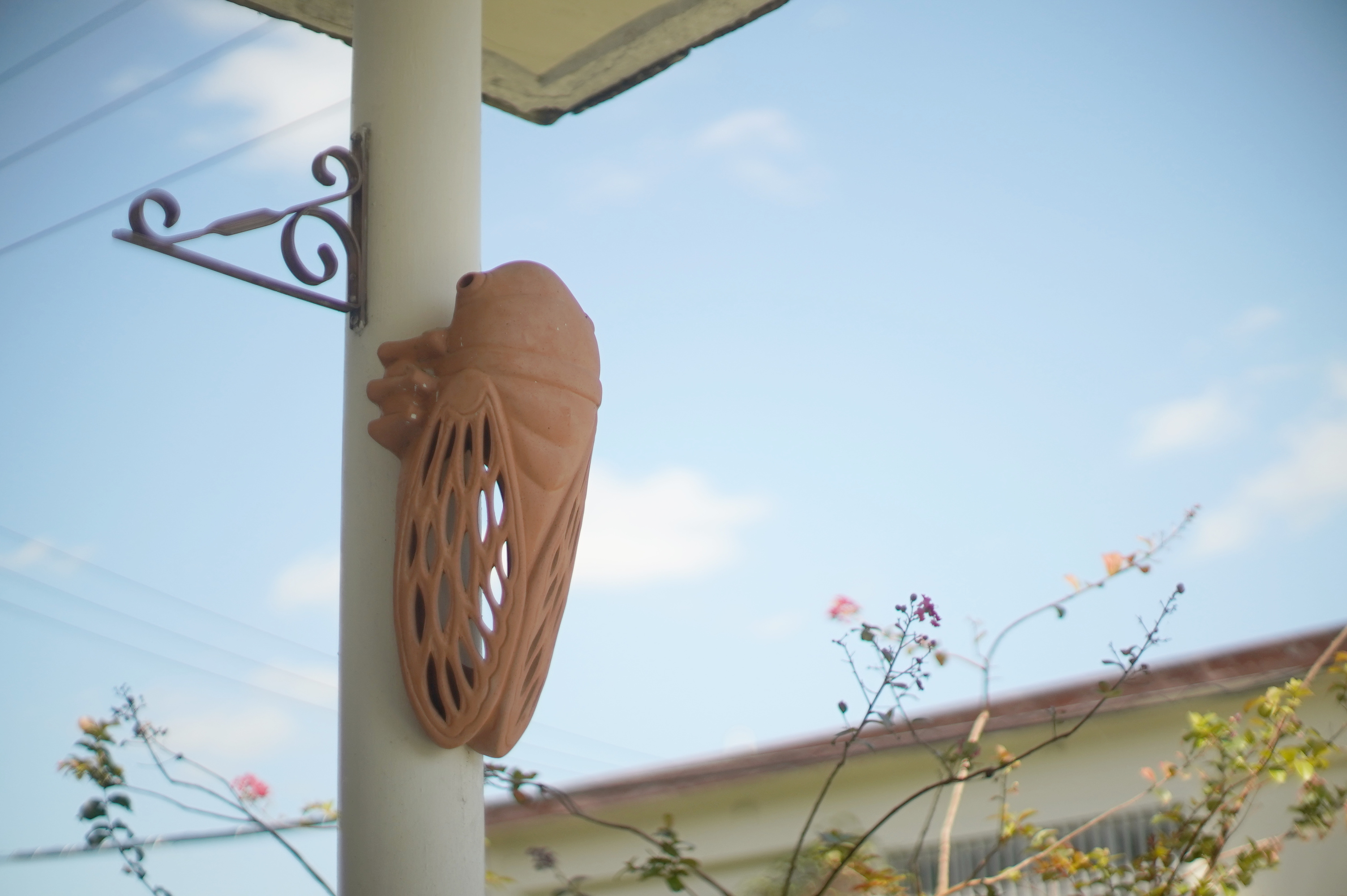 極めつけは柱にとまっているレンガ色のセミ。今にも大声で鳴きだしそうなリアルさです。