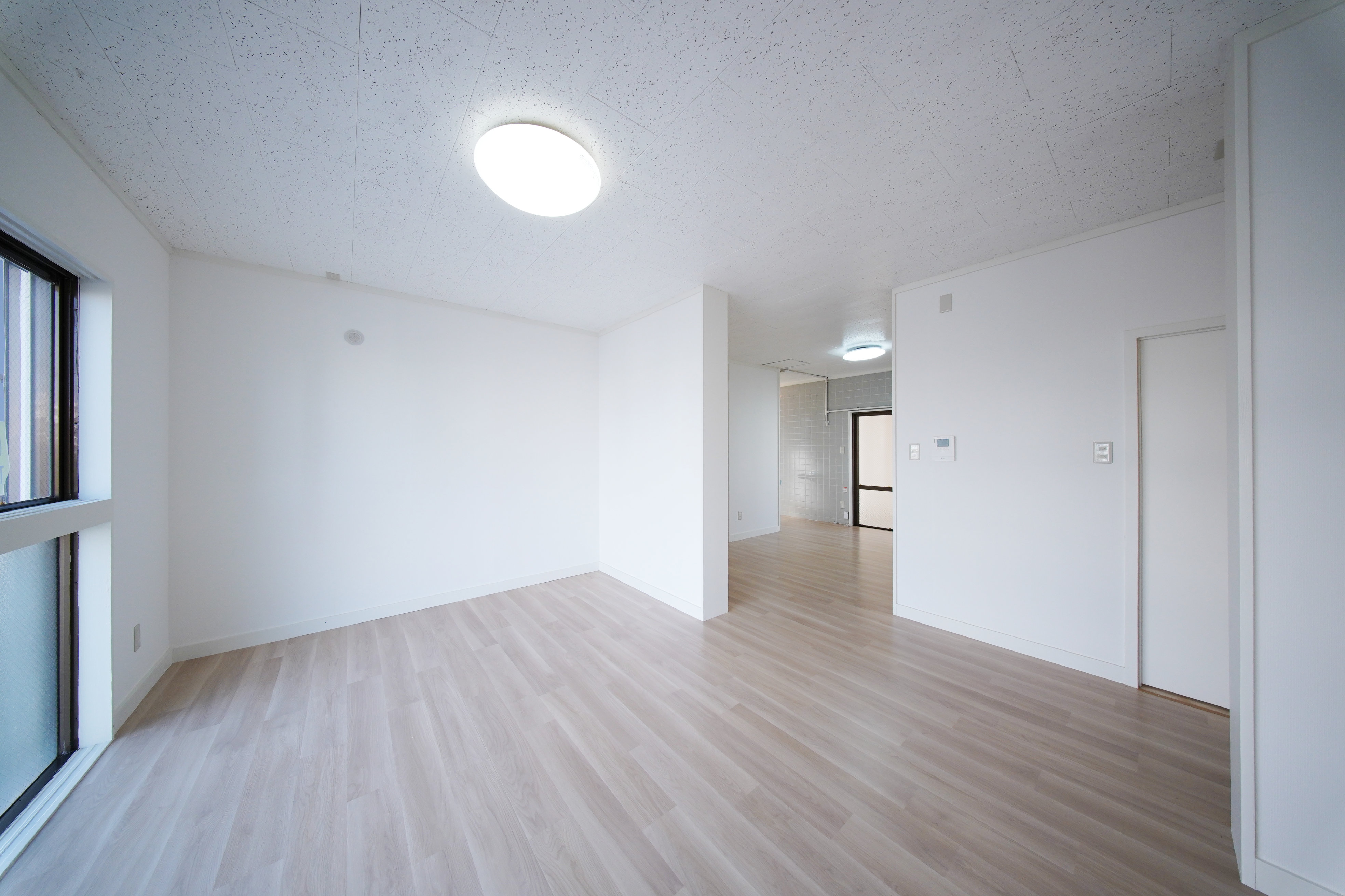 白を基調としたリビングと和室は、清潔感あふれる印象。