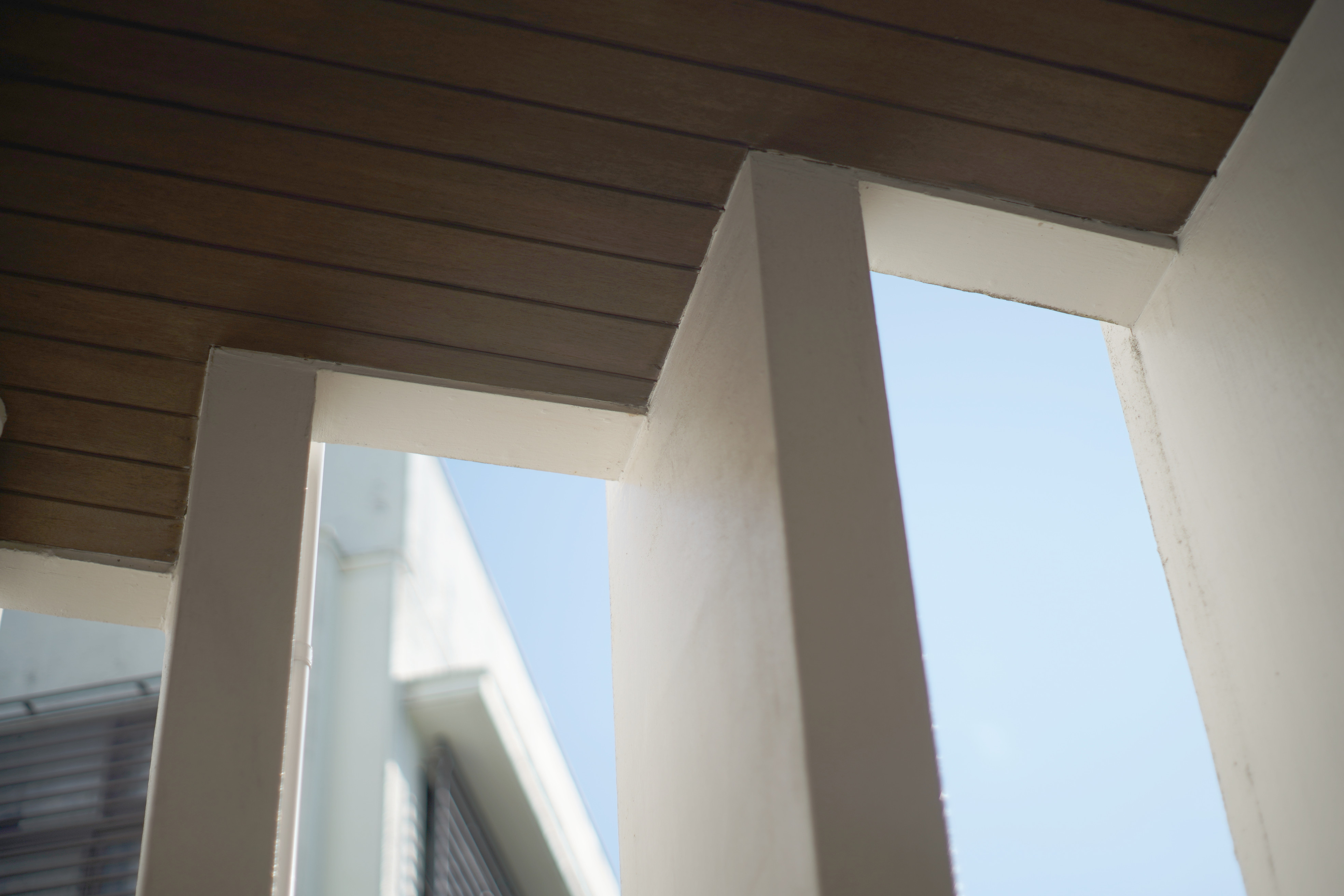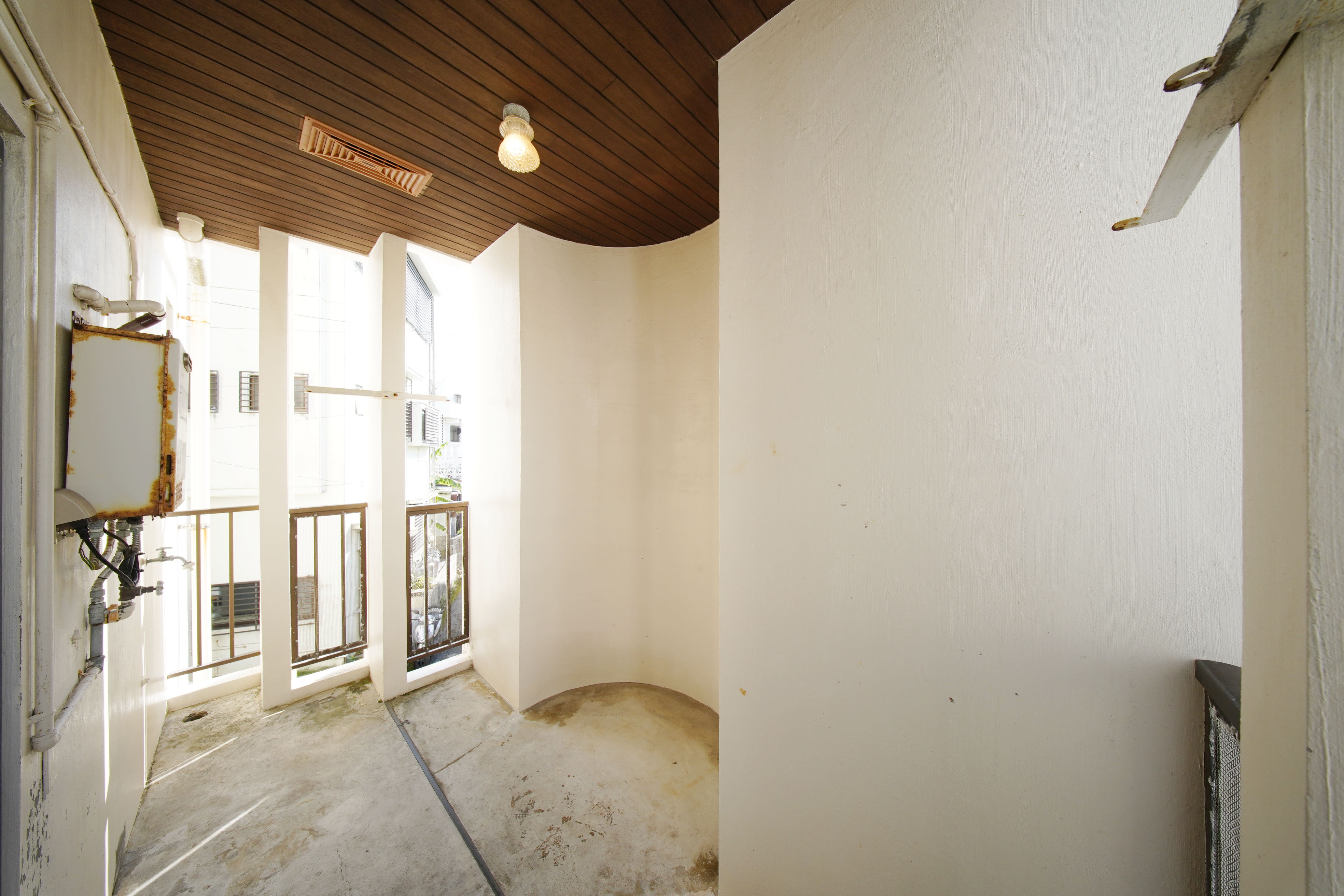 キッチン側の屋根付きバルコニーはなんだか独特なカタチ…。