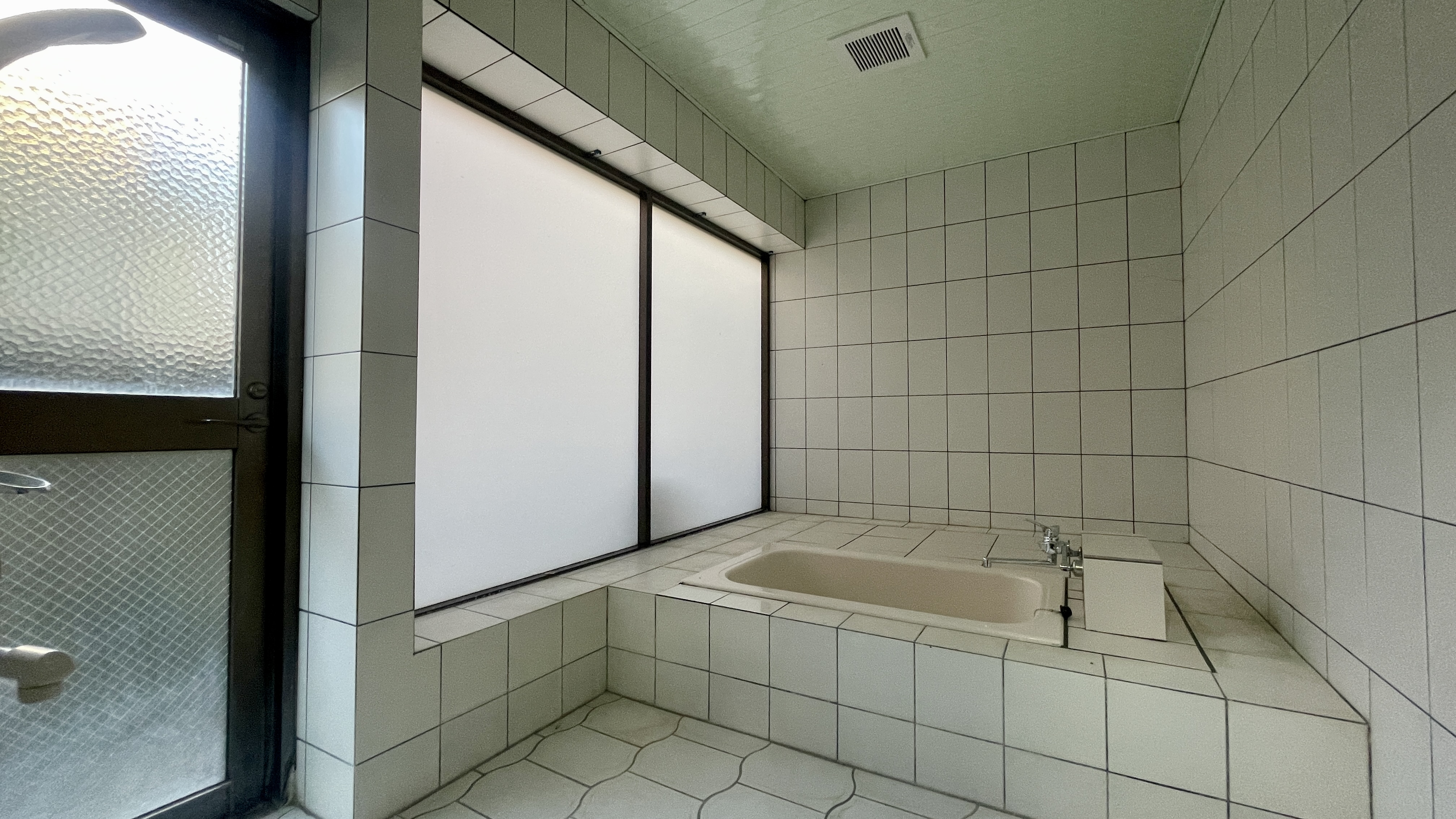 お風呂場もかなり広く、大きめのタイルを柔らかな自然光が照らします。