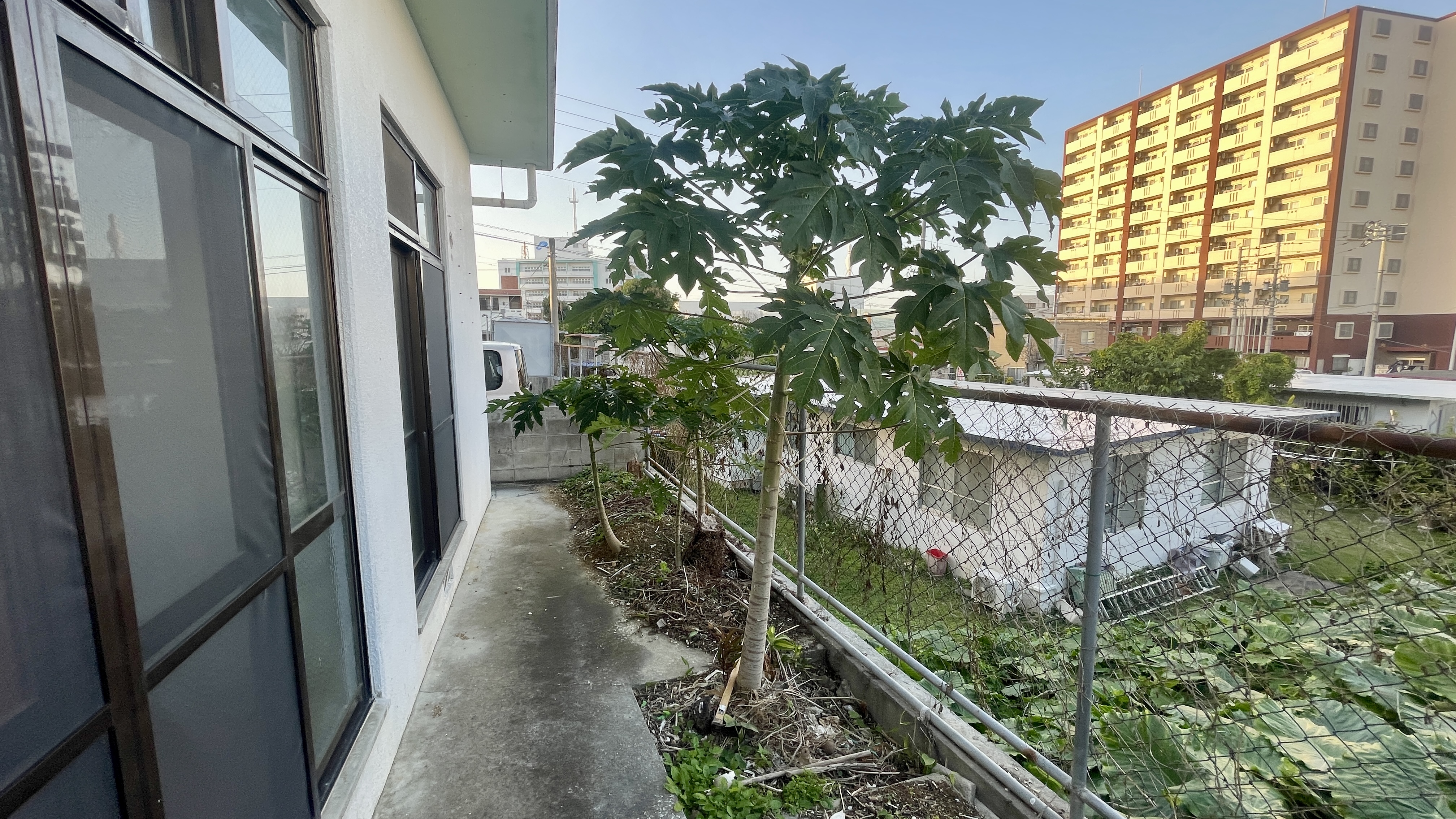 メイン通りから見ると一階にテナントの入った二階建てのアパートですが、その脇にある少し急な坂道を下ると、