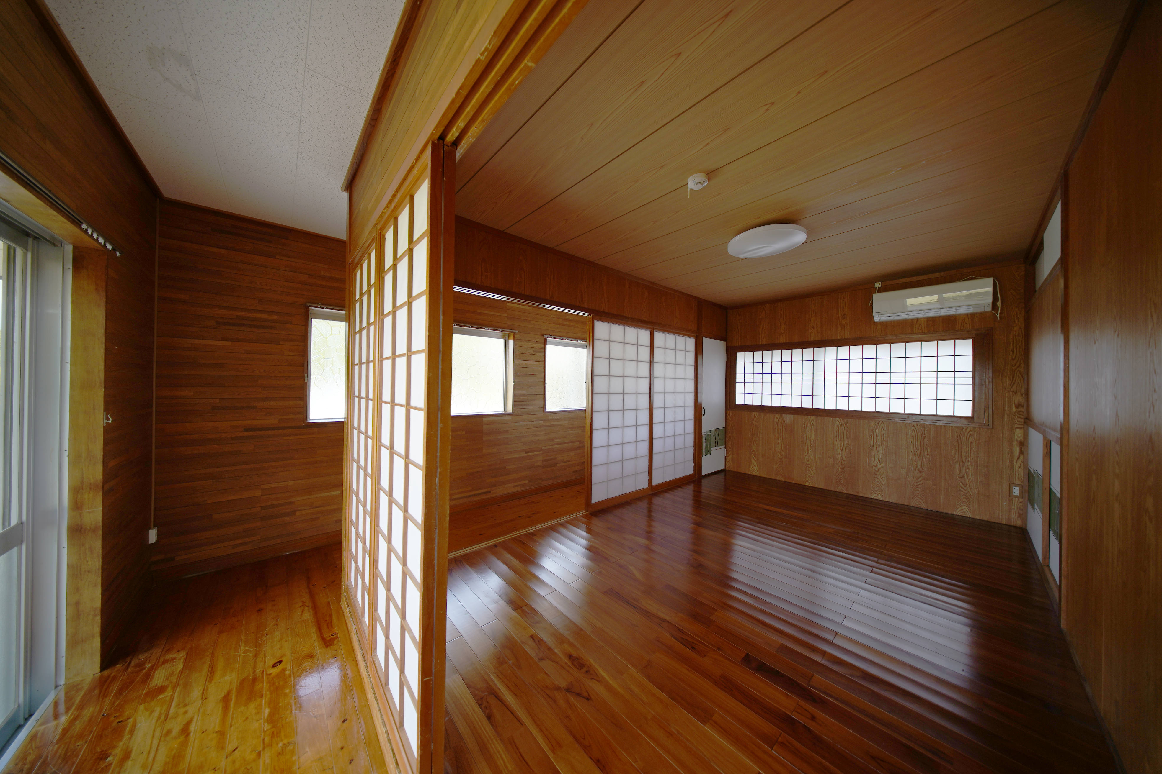 木目が目に優しいDKと洋室。奥には小上がりをふすまでで仕切るお部屋も。